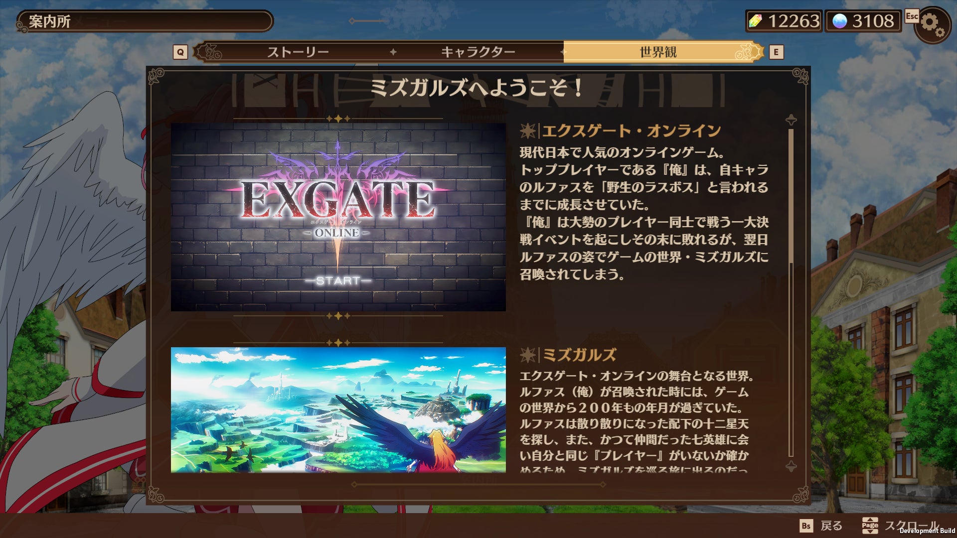 プロローグにて「これまでのお話」を早口解説でご説明。キャラクター、世界観、ストーリーの流れを一気に把握していただけます。動体視力に自信のない方には「案内所」もございます。ここではゆっくり解説テキストや紹介画像をご覧いただくことが可能です。