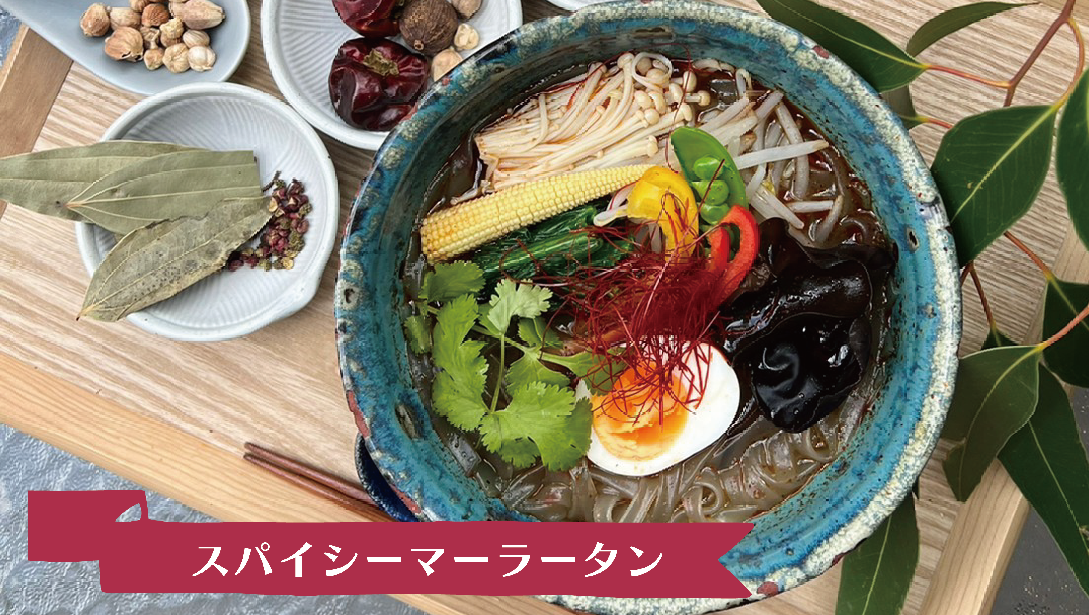薬膳スープは30種類のスパイスを季節等によって変化させ砕いて作るオリジナルで、日本人の口に合わせた和風マーラータンとなっている。