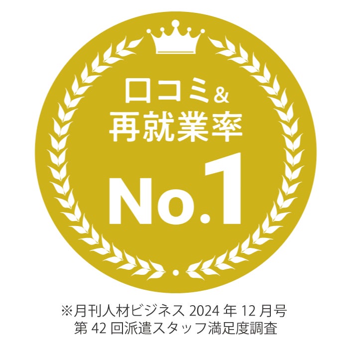 株式会社リクルートスタッフィング(本社:東京都千代田区、代表取締役社長:田中 智己、以下「リクルートスタッフィング」)は、株式会社オーピーエヌ発行 月刊人材ビジネスが対象者4000名に実施した「第42回派遣スタッフ満足度調査」において、主要項目である「口コミ率(この派遣会社を友人に勧める)」、「再就業率(今後もこの派遣会社から働きたい)」で、1位を獲得いたしました。