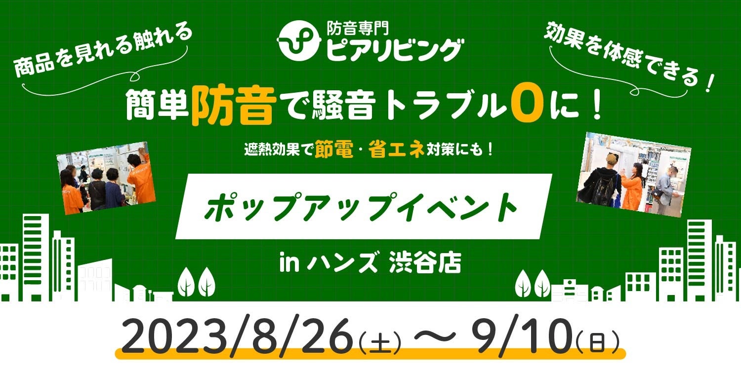 【防音専門ピアリビング】ハンズ渋谷店にて、8/26(土)から防音商品が体感できるポップアップイベントを開催!来場特典として現場調査キャンペーンも実施