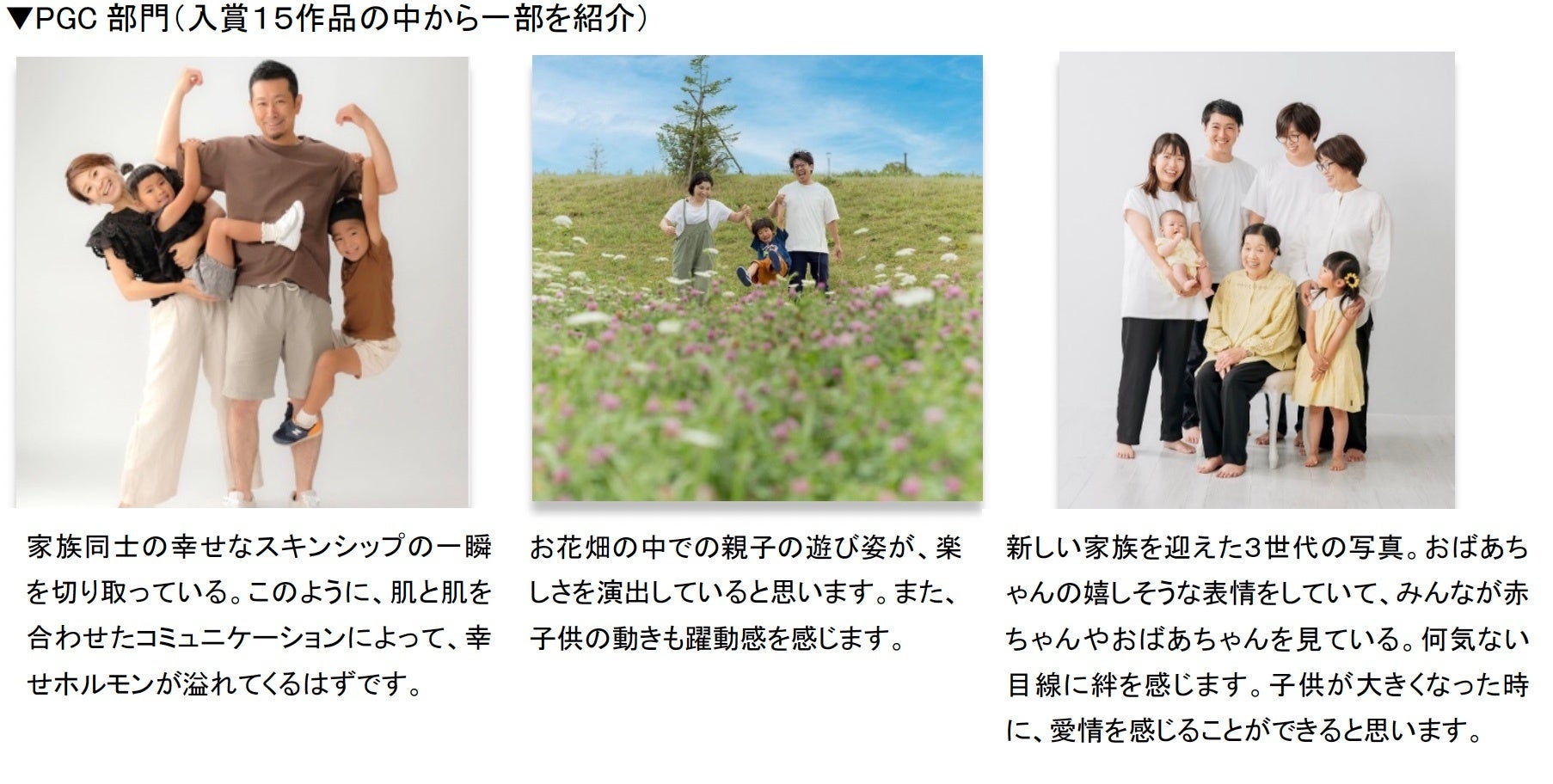 プロジェクトの第一弾として、~未来に写真をつなごう~写真コンテストを開催し、821枚の写真が集まりました。今回の受賞作品選考基準としては、家族の絆を改めて感じられる写真や、未来に残る大切な一枚となる写真、また、写真でお子さまの自信を引き出す「ほめ写プロジェクト」(※1)の観点から審査を行い、スタジオアリス部門、PGC部門それぞれの受賞作品が決定しました。