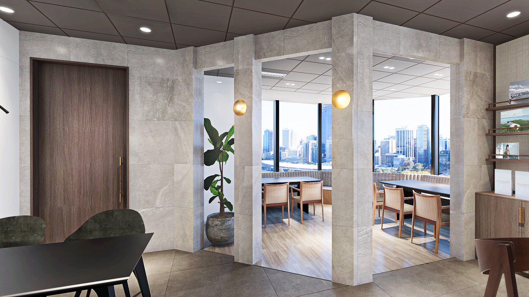 またエントランスからアプローチを抜けると、2面ガラス張りの自然光豊かなウエディングブースエリアが広がります。ウエディングブースは、高層階ならではの眺望を望む窓側ソファ席やサンルームをイメージした開放感あふれるブース席など、エリア毎に趣の異なる家具を配置することで訪れる度に気分を変えて打ち合わせを楽しむことができます。