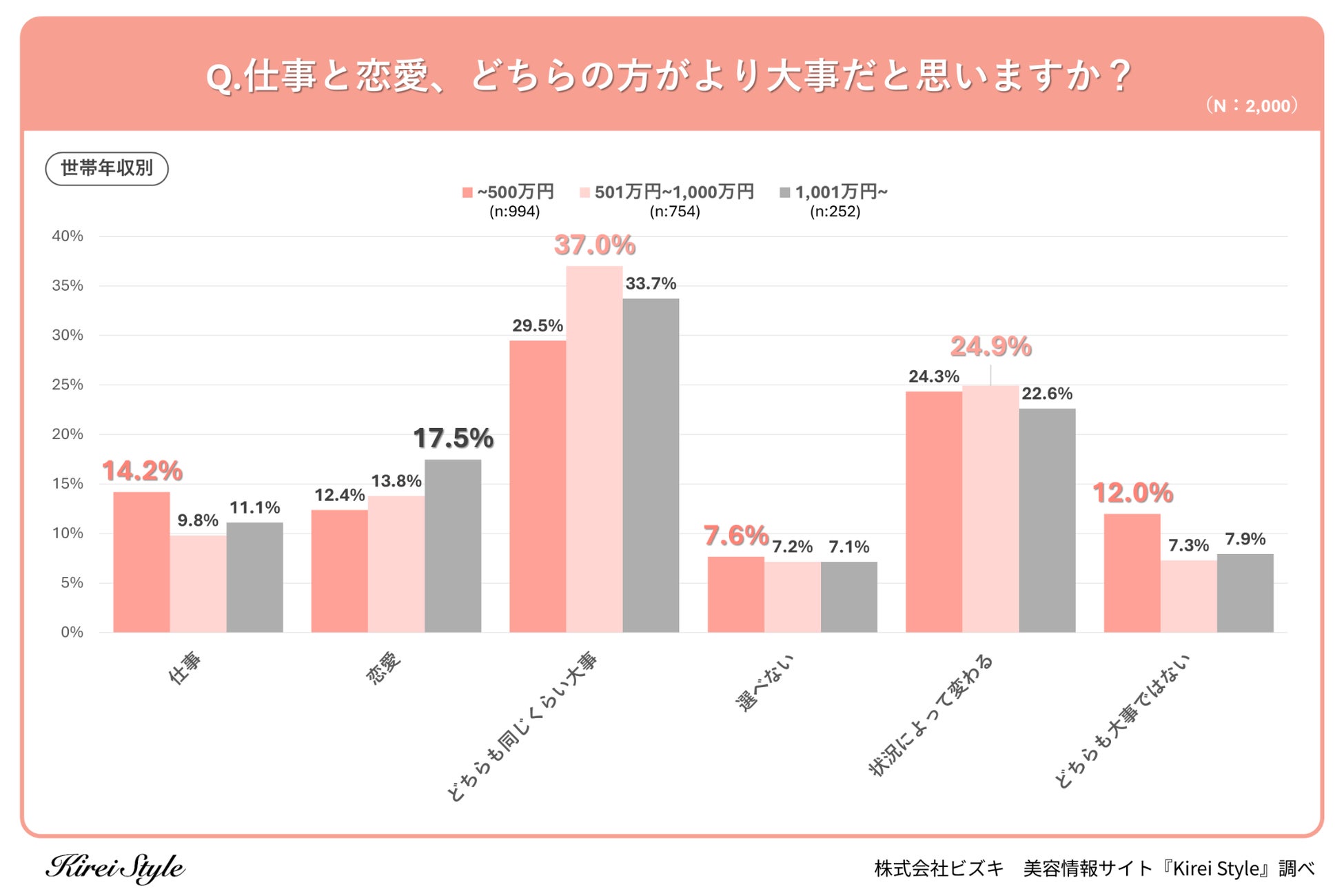 女性2,000人に聞いた!仕事と恋愛どっちが大事?世帯年収が上がるほど「〇〇」を重視する傾向が