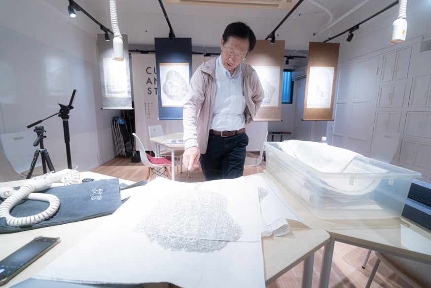 こうしてスタートしたプロジェクトが猫碑コレクションです。宮城県丸森町は猫神石碑日本一の建立数を誇る町です。猫石碑研究の第一人者である、石黒伸一朗さんとのコラボ商品になります。石黒先生による猫碑調査・研究で発生する高精細な写真データ、拓本、調査レポートなどを用いて丸森町の猫碑を学術的資料をもとに、ストーリーテリングなアプローチでデザインに昇華して行きます。
