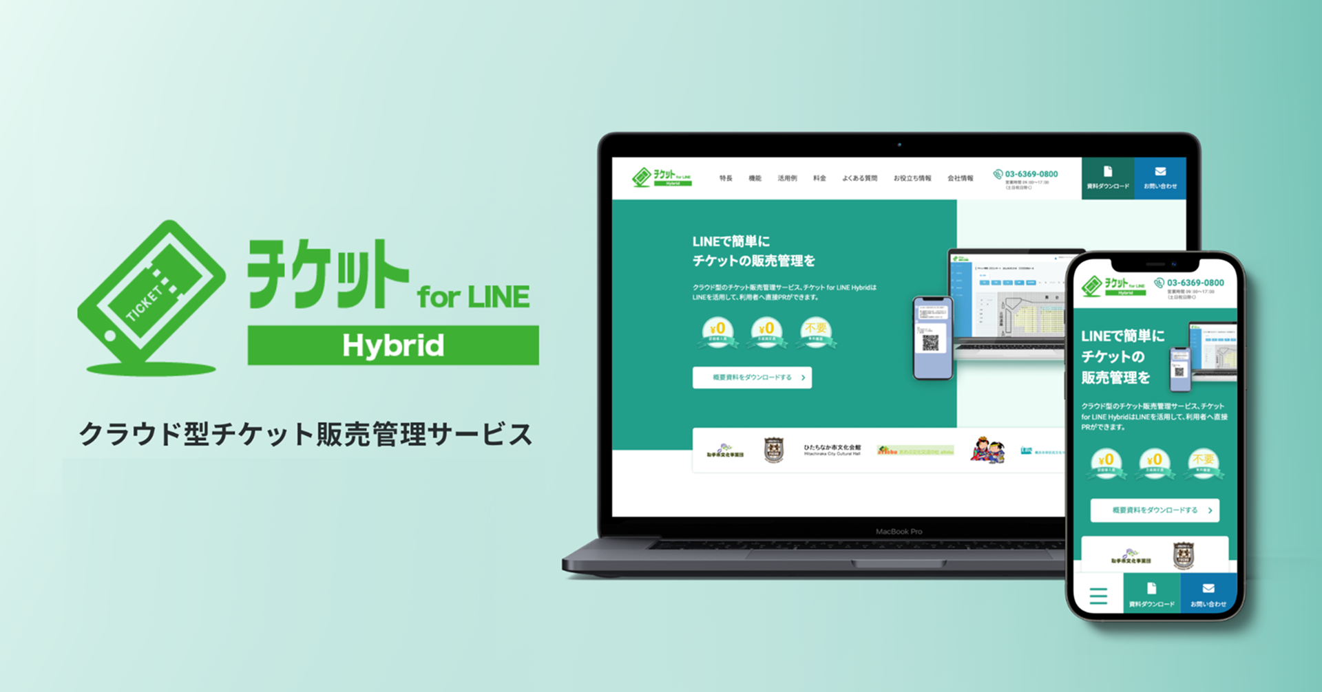 【チケットfor LINE Hybrid】は、チケット販売管理サービスです。初期費用・導入費0円で、コストはチケット1枚毎の販売手数料のみなので手軽にサービスを導入頂けます。