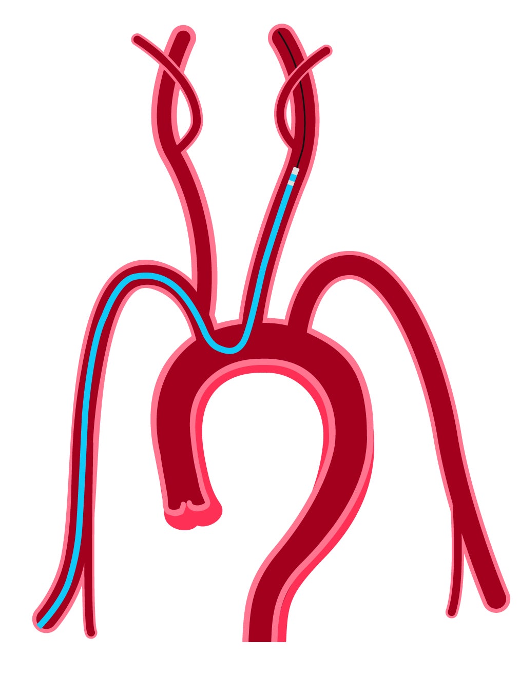 血管内治療は、カテーテルを挿入し標的血管まで送達させ、カテーテルを介して治療するため、外科的手術と比較して患者さんの負担が小さいこと、手術時間が短いことが利点です。