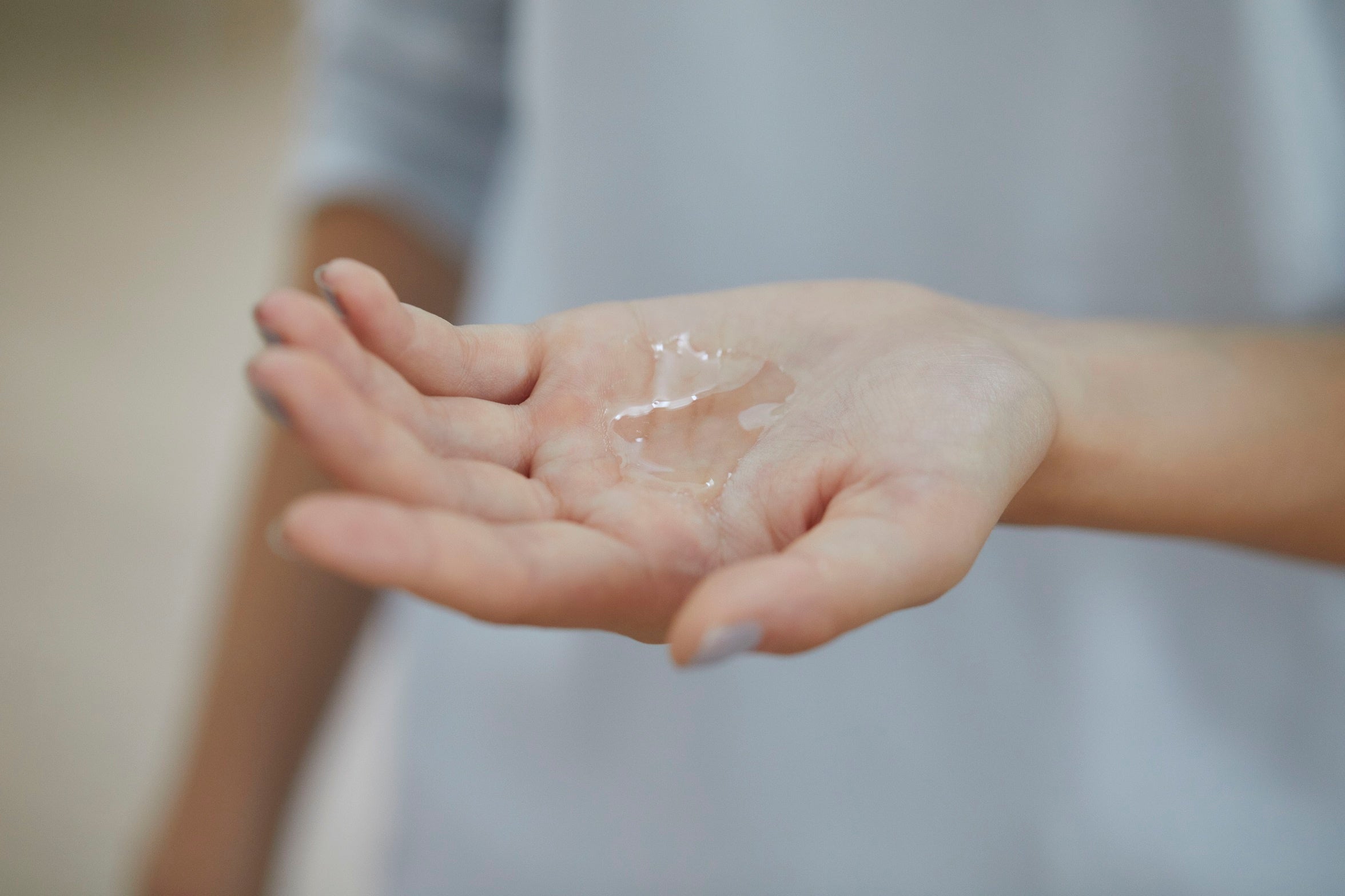 2、500円玉程度の量を目安にして手のひらに取り、指で肌にのせたら、指の腹を使ってくるくると滑らせるようにやさしくなじませる。