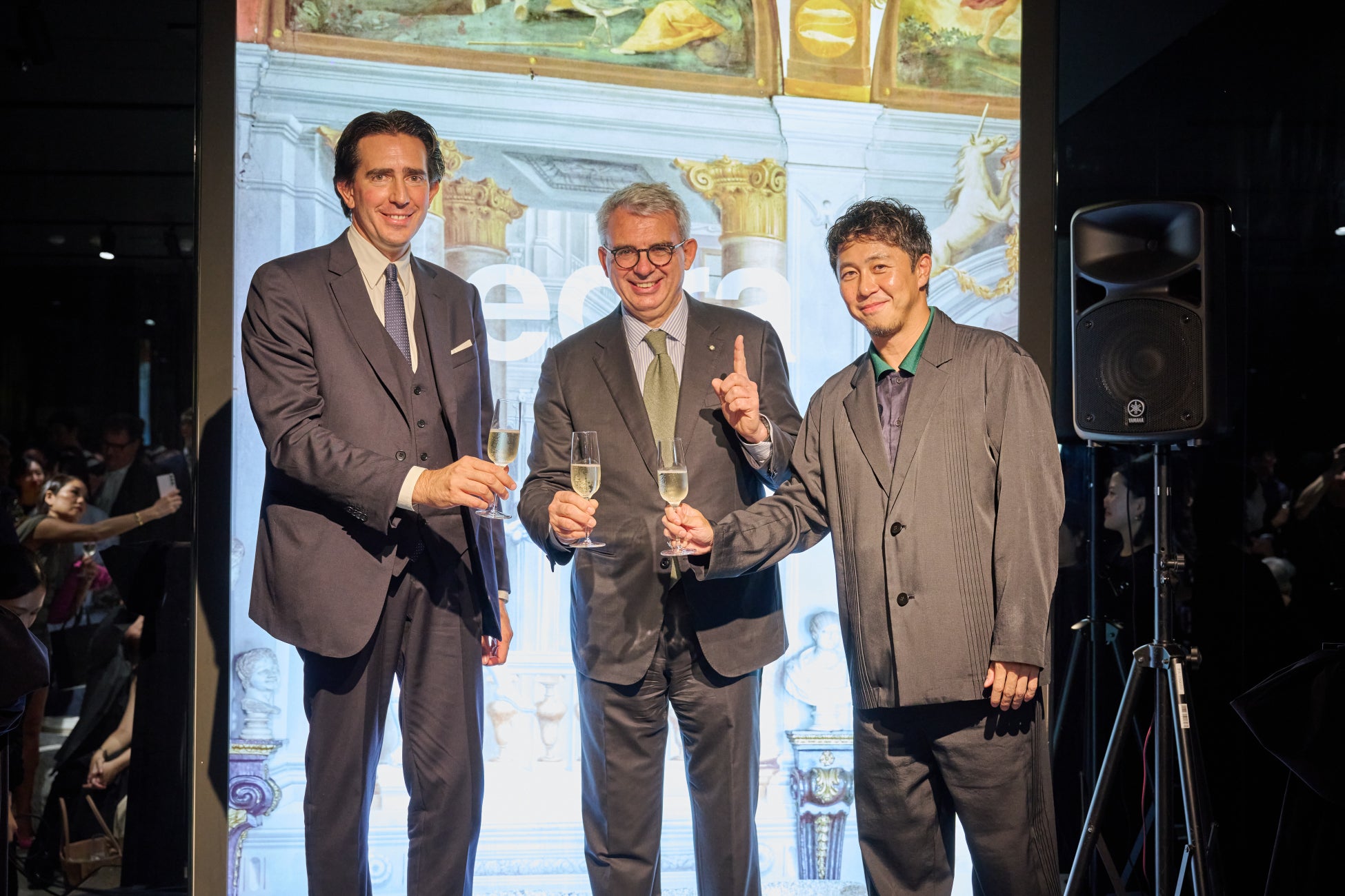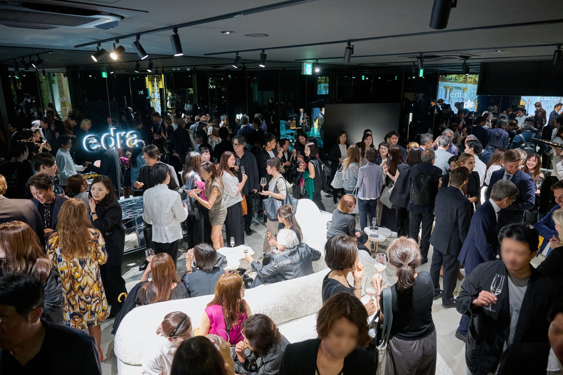 ジャンルイジ・ベネデッティ大使の祝辞に続き、北村社長とニコロ・マッツェイ氏によるテープカット・乾杯で幕を開け、イタリアから来日したEdraのボードメンバーたちも来場者と交流。デザインと文化が融合した華やかな夜となりました。