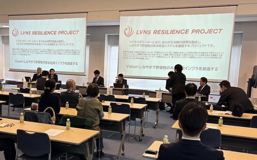 また本企画のきっかけとなったリバネスレジリエンスプロジェクトの西村氏(株式会社リバネス)からは、大手企業・ベンチャー・行政・研究機関等、異業種異分野のパートナーが横断的に協働することで、有事平時の両方に機能する、しなやかで許容性のある社会インフラの創造を目指すことについて説明がなされました。