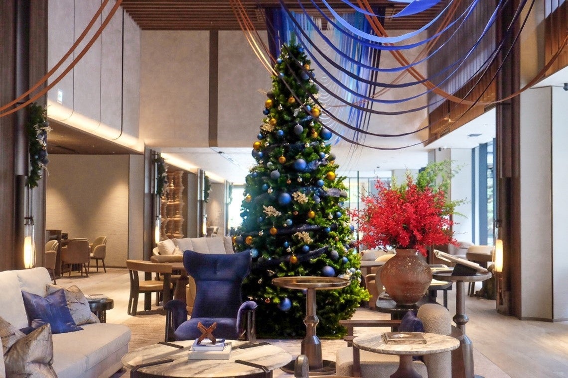 タイの大手ホテル・不動産開発会社である、デュシット・インターナショナルが手掛ける旗艦ラグジュアリーホテルの日本進出一号店、デュシタニ京都 (総支配人:山下誠、所在地:京都市下京区)は来月初旬から、開業から初めて迎えるクリスマス・シーズンに向け、館内の4箇所の料飲施設にて、シェフが腕を振るう期間限定の特別メニューをご提供いたします。また、華やぐシーズンの到来を前に、ロビーには日本とタイの融合をイメージした、ネイビーブルーで統一したクリスマスツリーを設置いたしました。