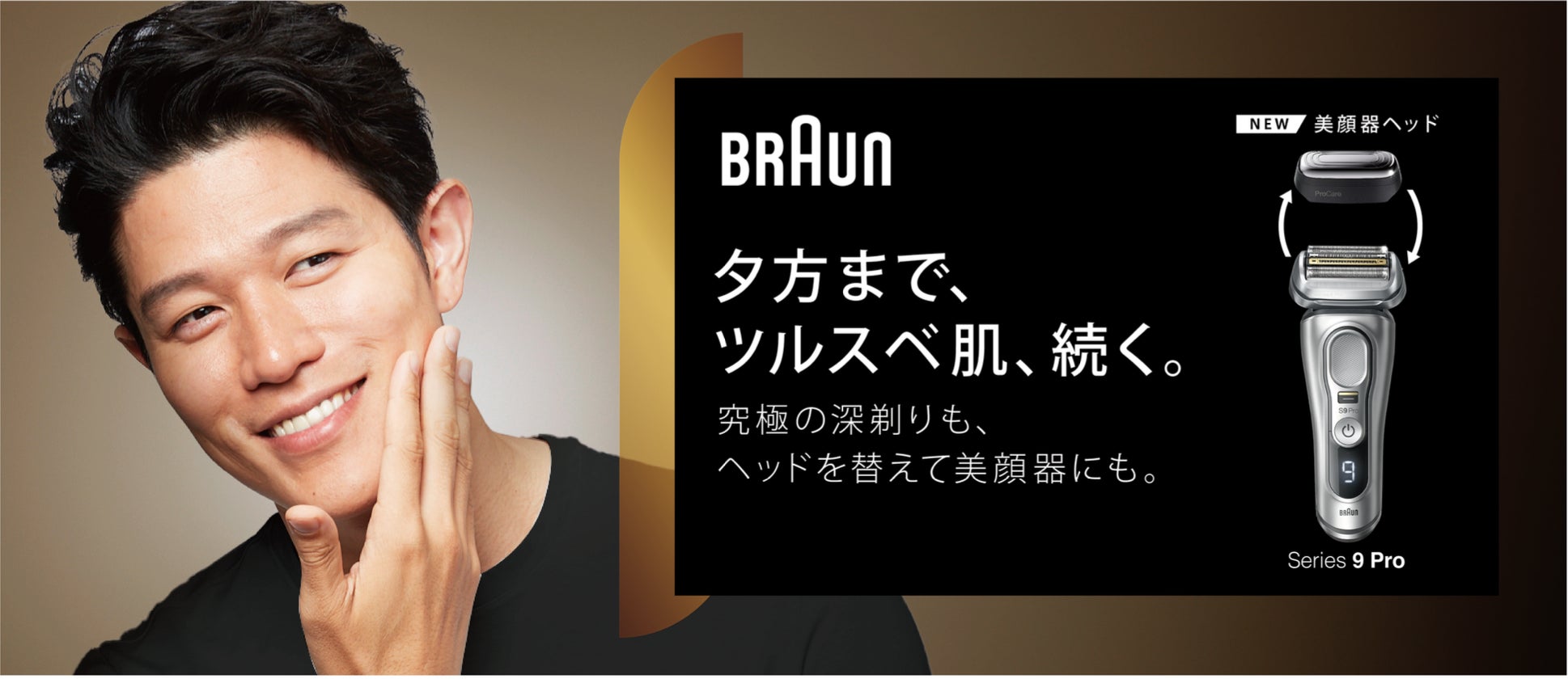 BRAUN史上初!シェーバーのヘッドを替えて美顔器に。「夕方まで、ツルスベ肌*1、続く。」ブラウン シリーズ9 Pro “美顔器ヘッド”付属モデル