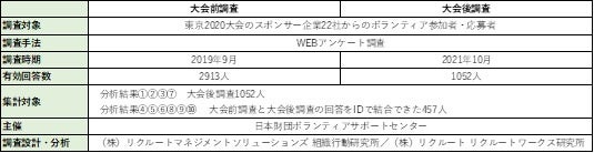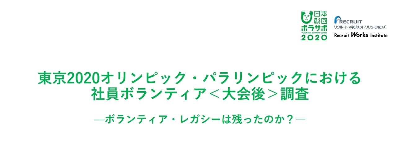 一般財団法人日本財団ボランティアサポートセンターでは、東京2020オリンピック・パラリンピックのスポンサー企業から大会ボランティアに参加・応募した社員を対象に、「大会前調査(2019年12月)」および「大会後調査(2021年10月)」を実施し、その結果がまとまりましたので、お知らせいたします。