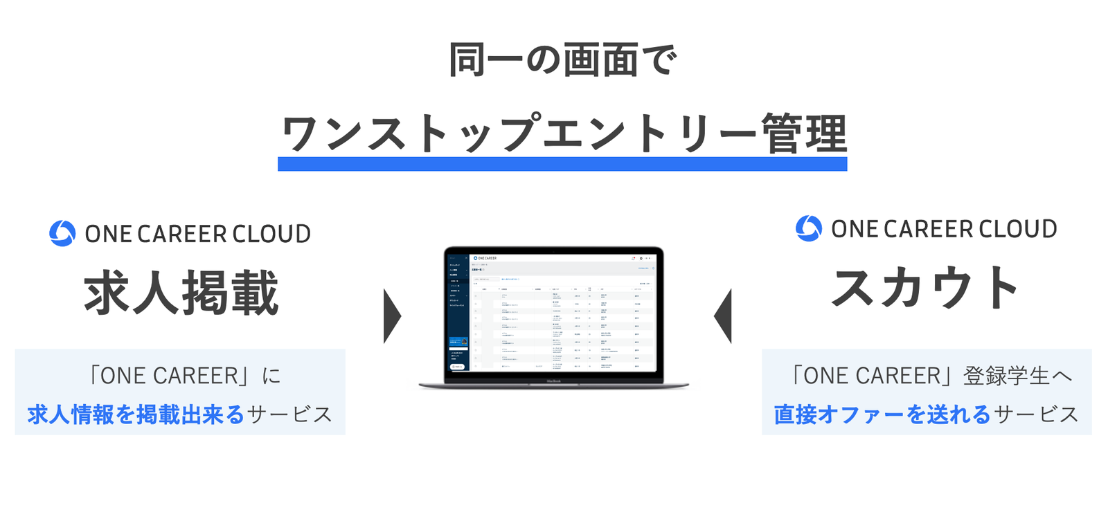 「ONE CAREER」の求人掲載機能と連動してスカウトをご利用いただくことができます。