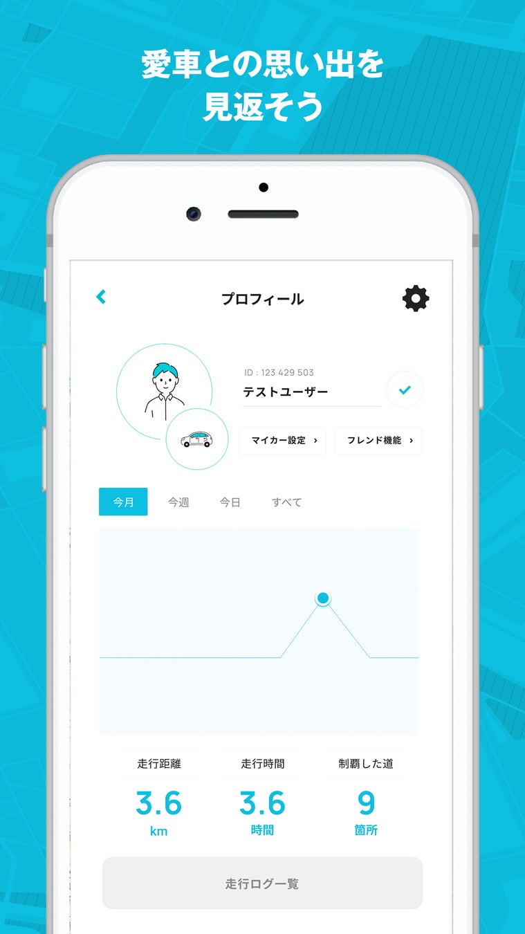 アプリにて、ドライブした移動情報を走行ログとして記録することができる機能です。この記録された走行ログを自身で見返したり、フレンドへシェアをすることができます。この機能を使うことで、自身の愛車との思い出を楽しんで見返せるほか、フレンドのドライブ先を参考に、新しく立ち寄りたい場所を探すことができ便利です。