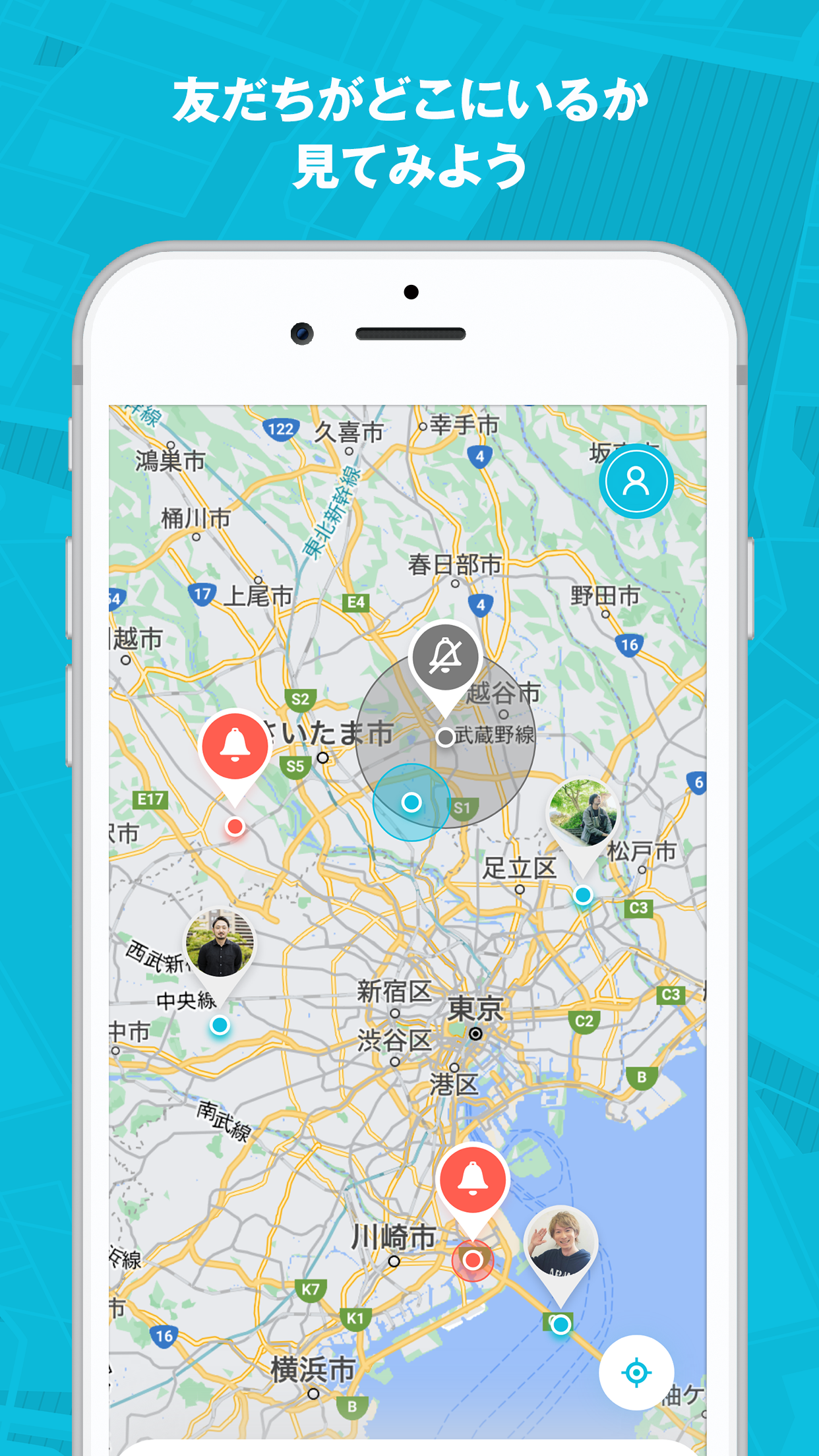 アプリ内でつながっているフレンドがドライブをはじめた時や、特定の場所を「アラートポイント」として、フレンドがそのエリア内に入った際に通知を受け取ることが可能です。これにより、どこにいるのか?という位置確認だけでなく、どこに向かってドライブしているのか?までが分かり、ドライブに誘うきっかけ等をつくります。また、通知しないエリアを指定することができるプライバシーポイントの設定も可能で、ユーザーに安心して使ってもらえるよう配慮しています。