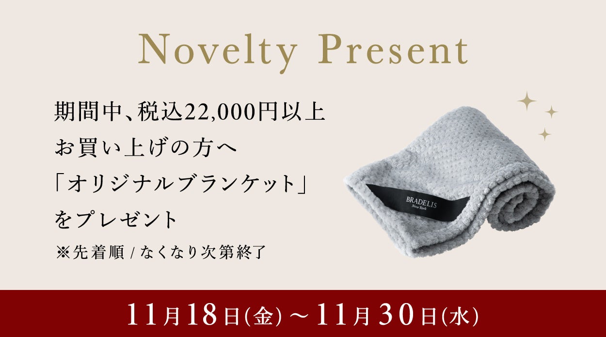 22,000円(税込)以上お買い上げのお客様へ、「オリジナル ブランケット」を差し上げます。※なくなり次第終了