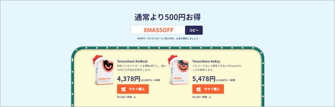 株式会社Tenorshareは、「クリスマスイベント」を期間限定で開催いたします。100%当選|最大40%OFF|通常より500円お得!