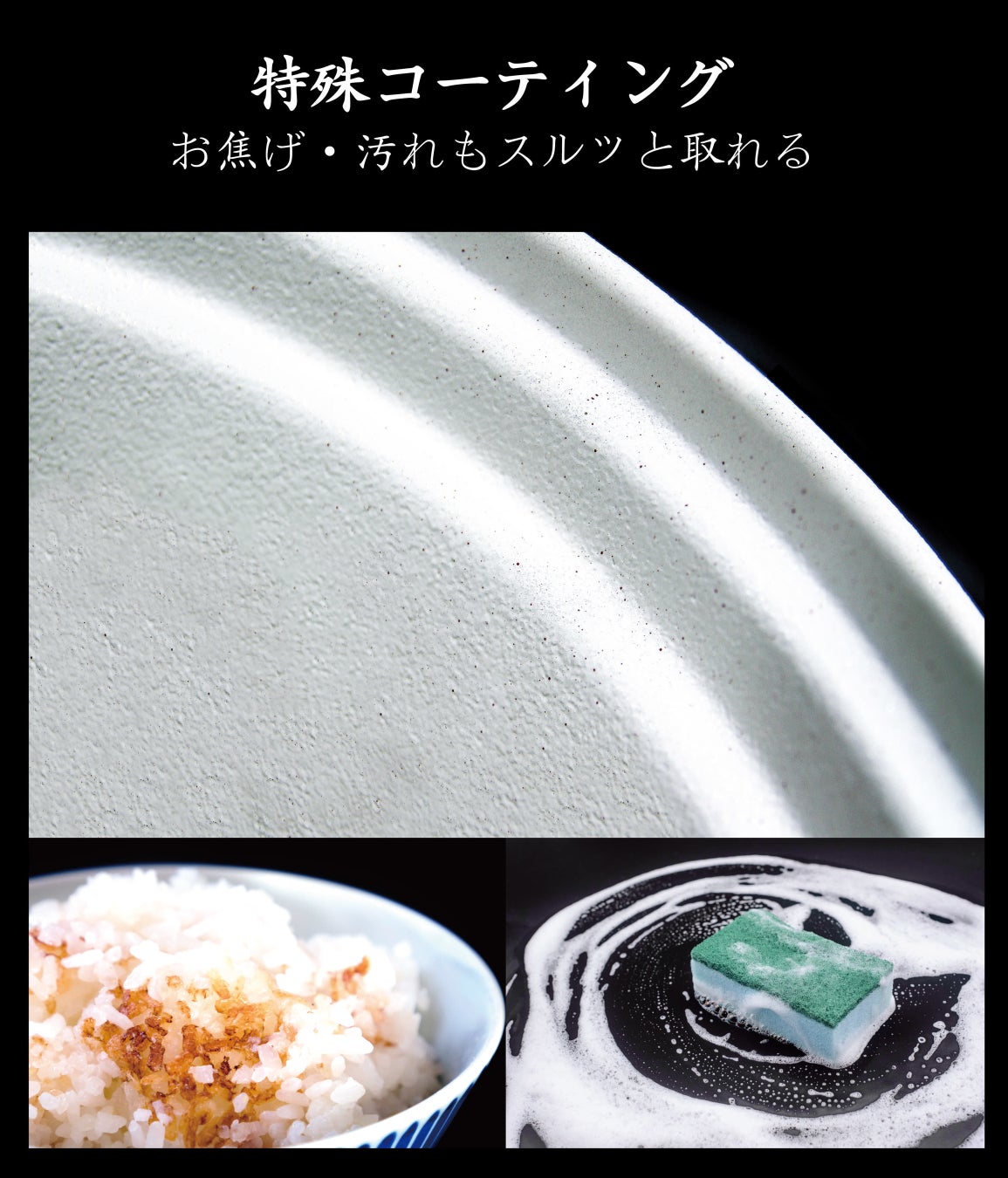 土鍋釜の内側には独自の特殊コーティングを施しています。