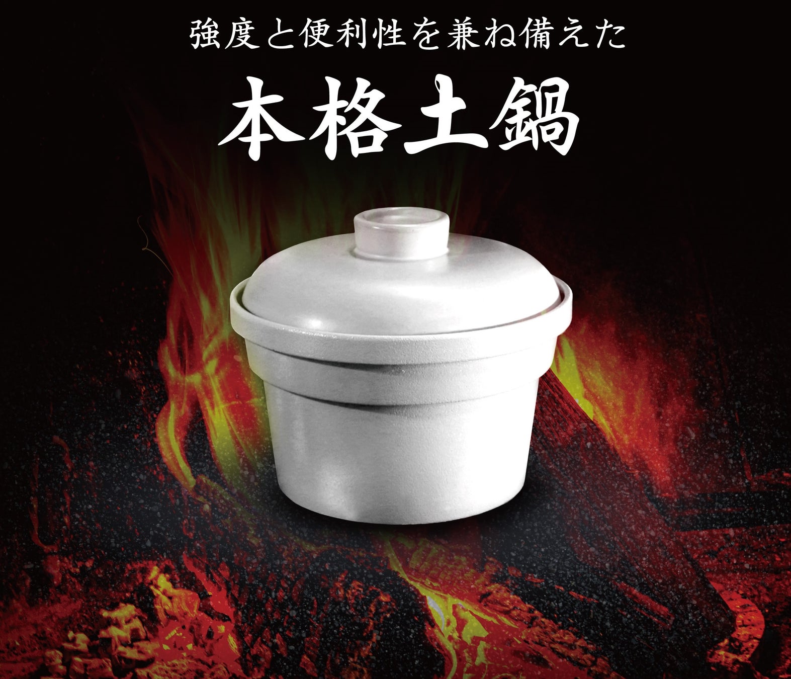 ②独自配合の粘土を1000℃の熱で焼きあげた特殊な土鍋釜は、耐久性が高くガスコンロでも調理可能!