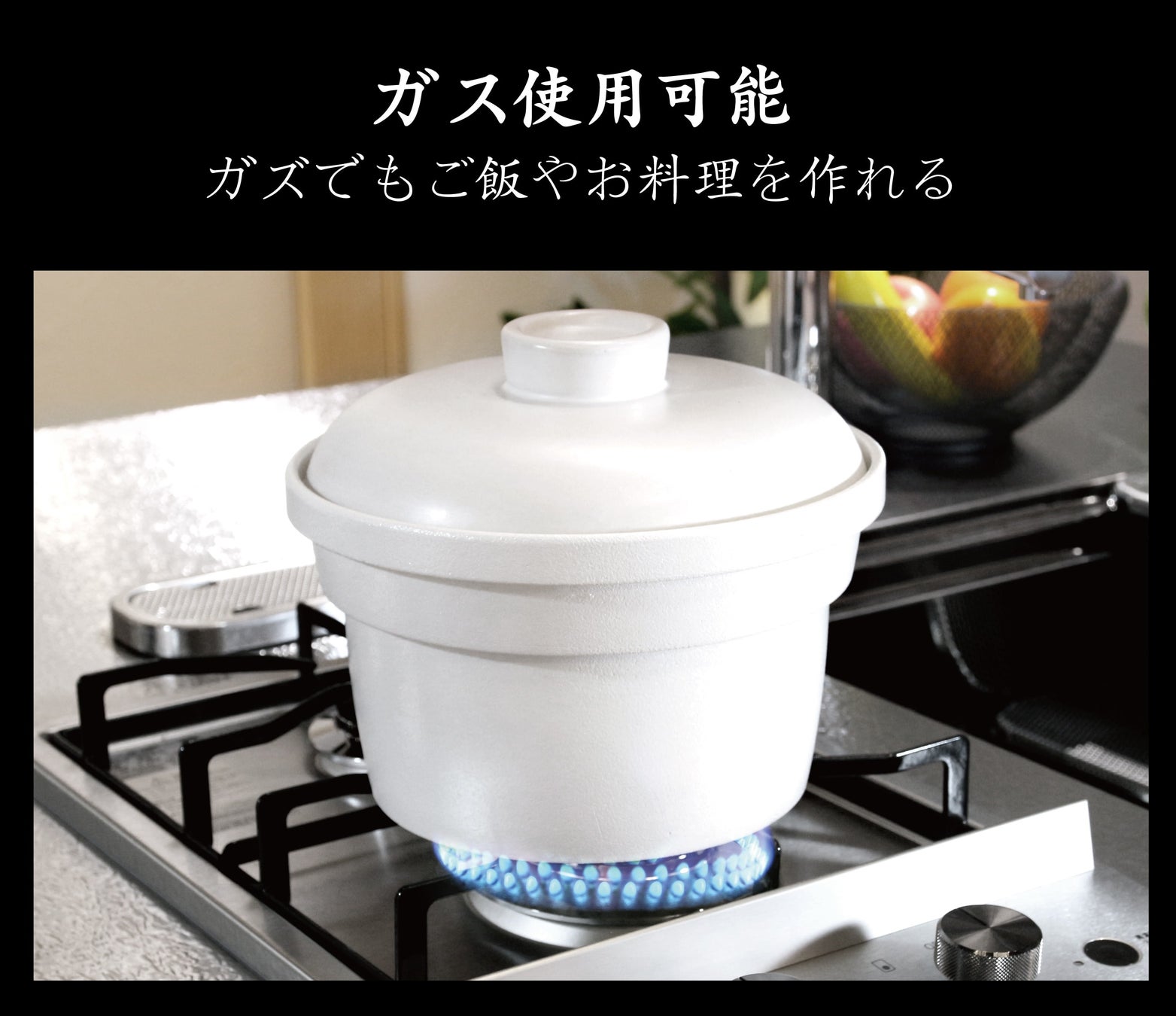 土鍋釜は耐久性が高く、本体から取り外してガスコンロでも調理ができます。