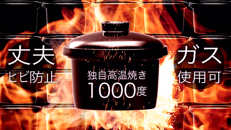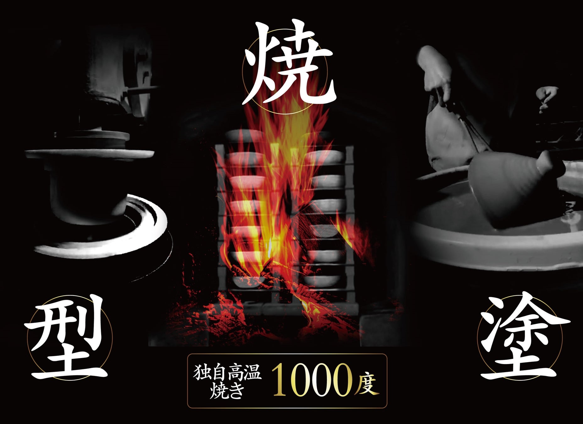 独自配合の粘土を1000℃の熱で焼きあげたことにより、耐久性が高く、ガスコンロなど直火でも調理がすることができます。