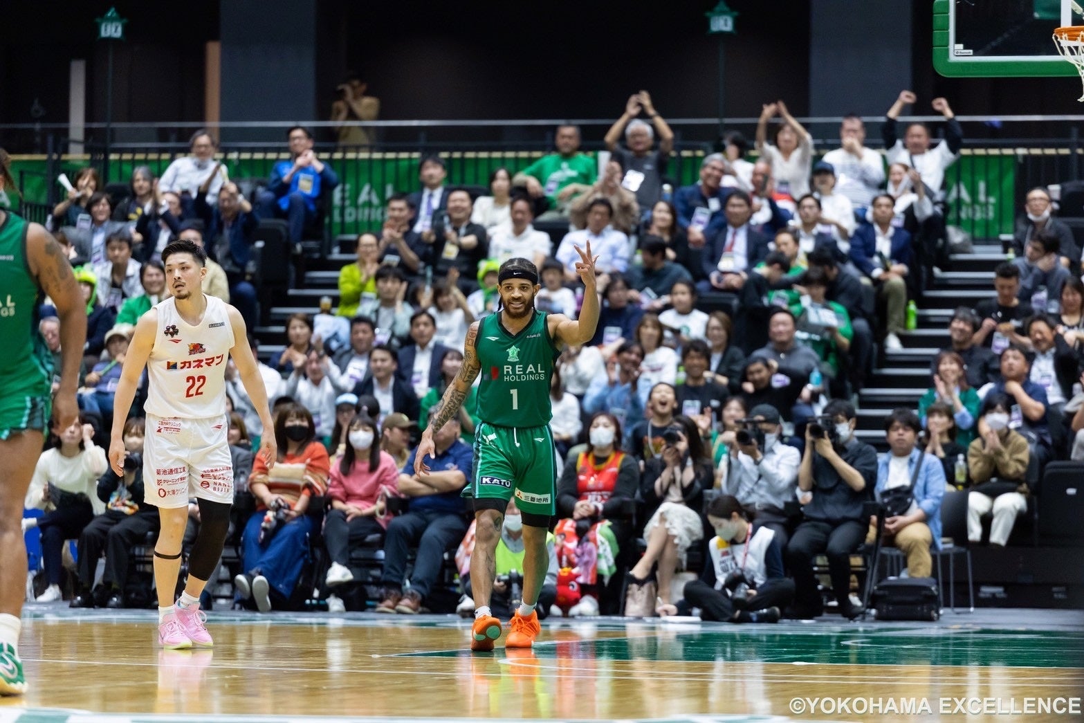 その後岩手の追い上げもありつつ、「#8 西山達哉」・「#1 トレイ・ボイドIII」が3Pシュートを立て続けに決めるなど逆転までは許さず、ホームの大声援を受け躍動した横浜EXはそのまま僅差で勝利!