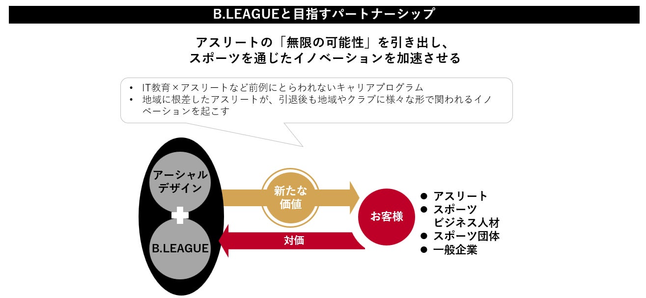 アスリートの新たなBizキャリアを創出していく事で、B.LEAGUEのさらなる発展、そして国内スポーツの価値向上に貢献してまいります。