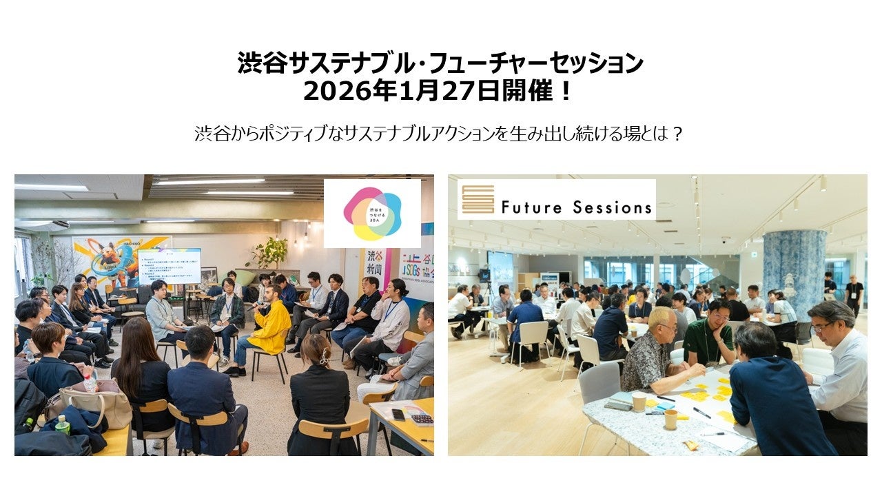 ソーシャルイノベーションの実現に向けて、創造的な対話の場をつくる株式会社フューチャーセッションズ(代表取締役社長:有福英幸、本社:東京都渋谷区、以下フューチャーセッションズ)は、サステナブルアクションを生み出すリアルな対話の場「渋谷サステナブル・フューチャーセンター」の立ち上げを検討しています。検討の一環として、2026年1月27日に「渋谷をつなげる30人」と共催で、 渋谷サステナブル・フューチャーセンターのあり方を参加者と共に考えるキックオフセッションを開催します。
