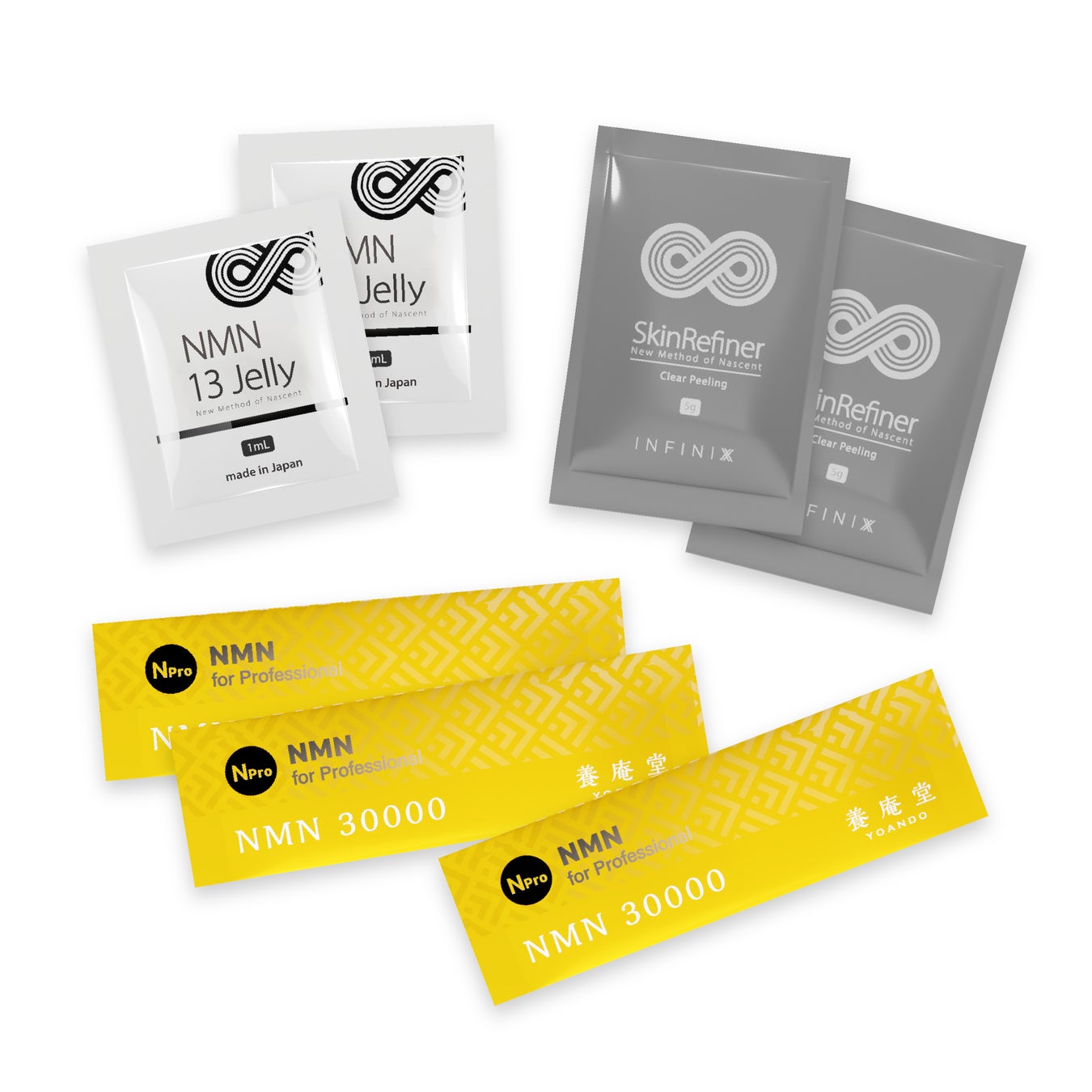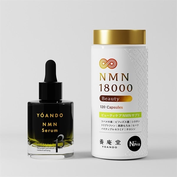 日本初(※1)リポソーム化NMN配合美容液『NMN 13 Serum』と、ハリツヤあふれる毎日を送りたい方のための美容特化NMNサプリメント『養庵堂NMN 18000 Beauty』を1点づつパッケージング。カプセルタイプのサプリメントに含まれるアナツバメの巣、パイナップルセラミドが内側からみずみずしさをサポートします。また、スキンケアでもNMNを取り入れることで、外側からも若々しさのケアを。