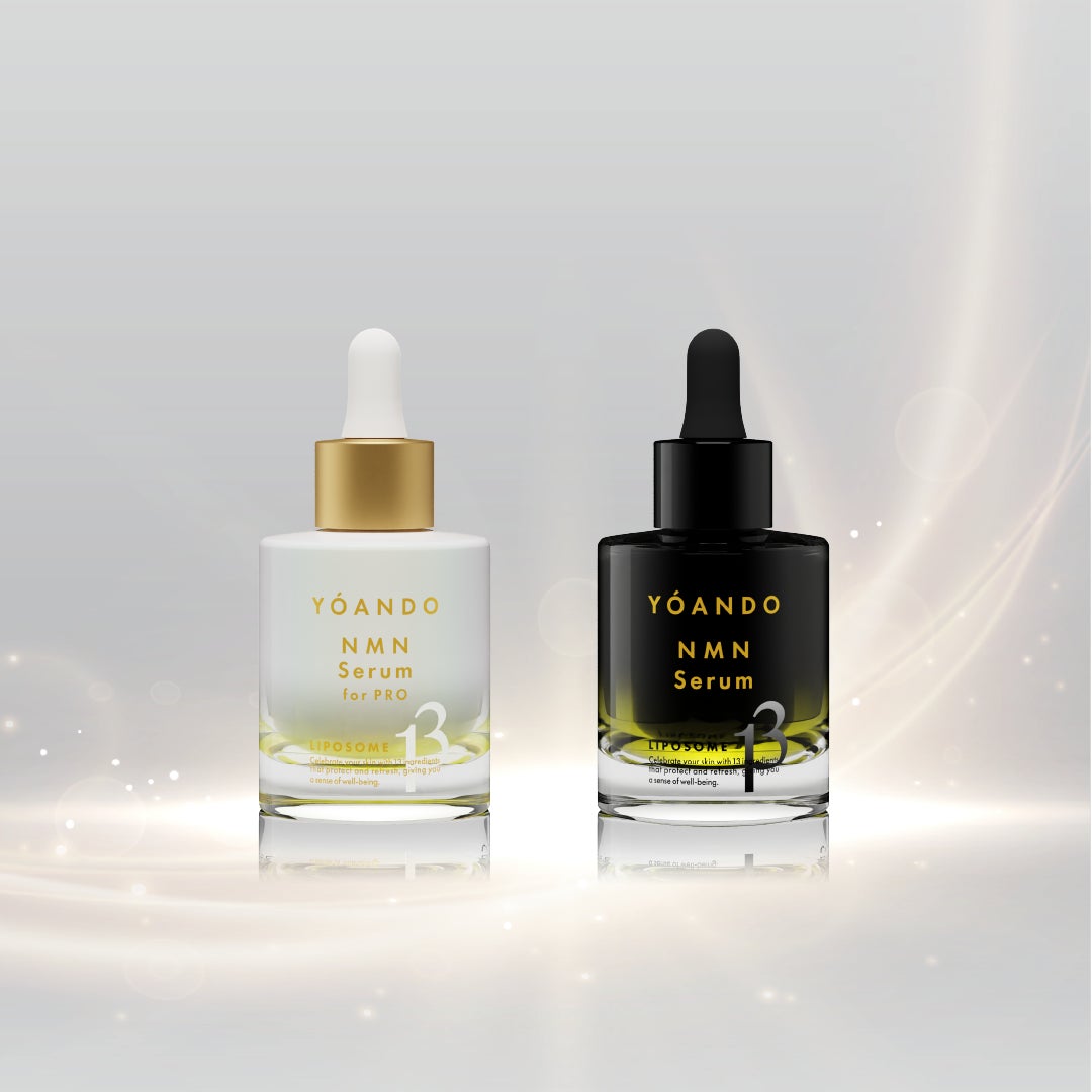 2024年4月に「INFINIXX(インフィニクス)」より「YÓANDO(ようあんどう)」へリニューアルし、アルコールフリーでさらにやさしい処方へ刷新しました。主成分のNMNをはじめ、ヒト羊水細胞順化培養液、ヒト骨髄幹細胞順化培養液、ヒト線維芽細胞順化培養液、合成ヒト遺伝子組換ポリペプチド-64( アクアポリン ) 、ヒト遺伝子組換オリゴペプチド-1(EGF) 、合成ヒト遺伝子組換ポリペプチド-16(PGF)、合成ヒト遺伝子組換ポリペプチド-31(IGF-2) などの成分をまとめてリポソーム化し、NMNをはじめとする美容成分の浸透力がアップ(※3 ※4)。みずみずしさに満ちたつやめき肌に導きます。