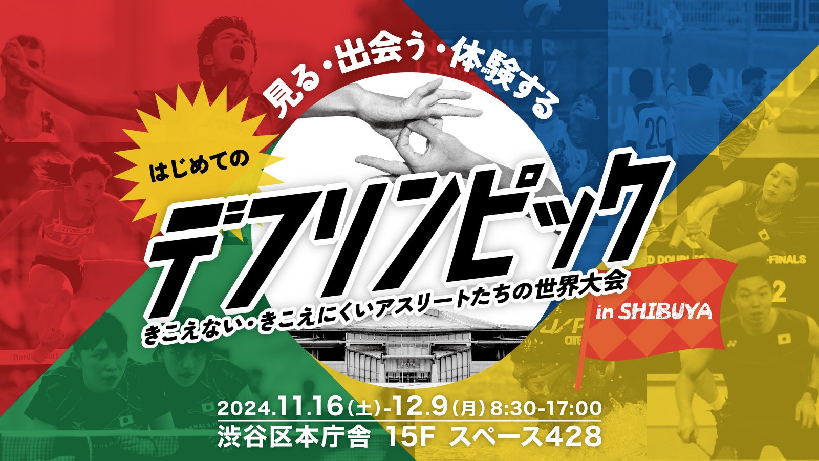 2024/11/16(土)〜12/9(月)、渋谷区役所本庁舎にて、渋谷区のデフリンピック気運醸成イベントを開催!常設展示のほか、会期中には体験・ステージイベント(事前申込制)も行います。