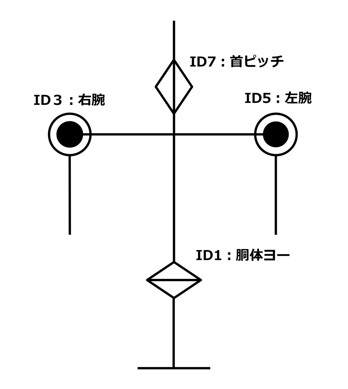 動作角度 | ID1(胴体ヨー軸):-60度~+60度 |