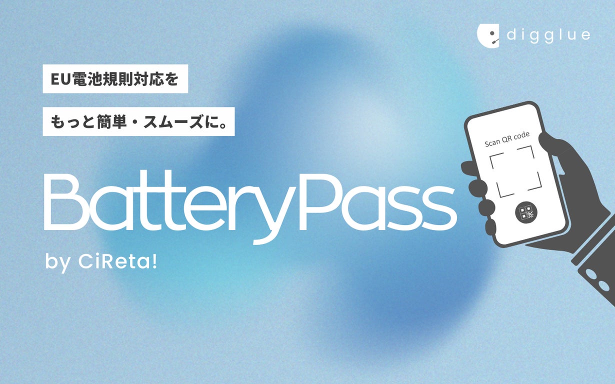 株式会社digglue(本社:東京都新宿区、代表者:原英之・中谷元)は、欧州電池規則(EU Battery Regulation)の13条6項(b)に基づき、電池へのQRコード表示およびウェブサイト表示の対応を可能にする新サービス「BatteryPass by CiReta!」を提供開始することを発表しました。本サービスは、EU電池規則の厳格な要求事項を満たすとともに、2027年2月18日までに義務化される電池パスポートへの対応を支援します。