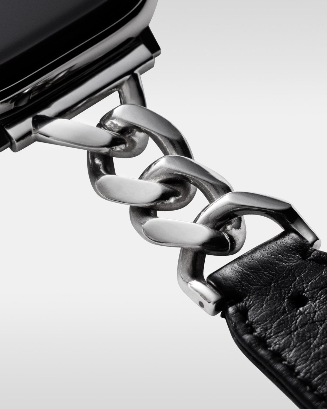 【objcts.io】シルバーの輝きを手元に纏う、ジュエリー感覚のApple Watchバンド。シルバー925製チェーンとレザーをミックスさせた新作アップルウォッチバンドを期間限定で受注販売。