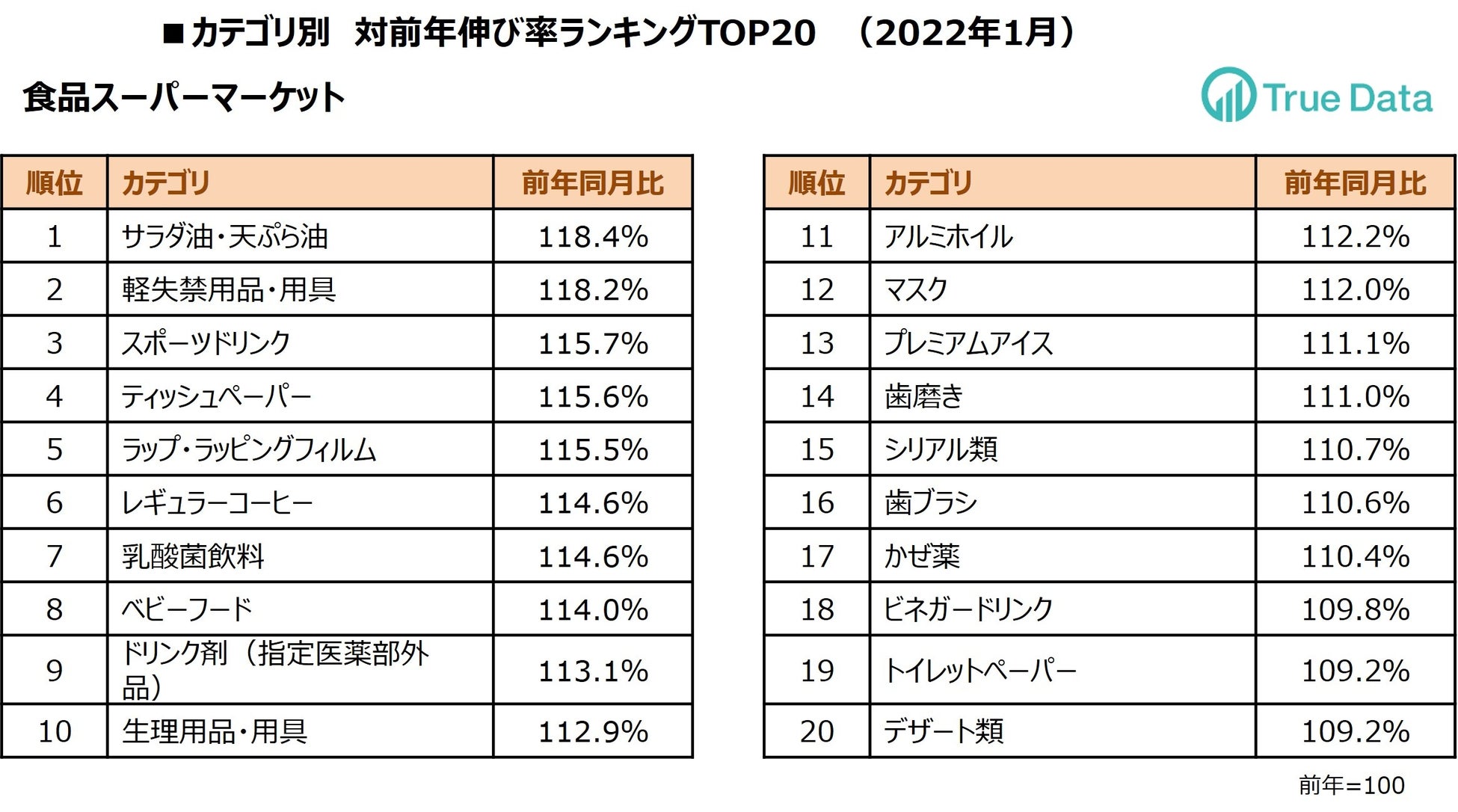 ~ドラッグストア、食品スーパーマーケット 2022年1月の伸び率TOP20カテゴリを発表 ~