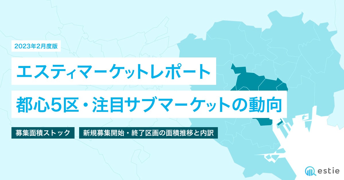 企業による価値創造の心臓部であるオフィスをはじめとする商業用不動産業界のデジタルシフトを推進し、日本最大級の商業用不動産データ分析基盤「estie pro」を提供する株式会社estie(本社:東京都港区、代表取締役CEO:平井瑛、以下「estie」)は、「estie pro」による分析データを基にした商業用不動産マーケットの月次レポート「エスティ マーケットレポート」2023年2月号を配信します。本号では、2023年1月号に続き、都心5区(千代田区、中央区、港区、新宿区、渋谷区)の物件需給バランスに関する最新動向を調査しました。サブマーケットの注目エリアは「芝・三田」を抽出し、分析しました。