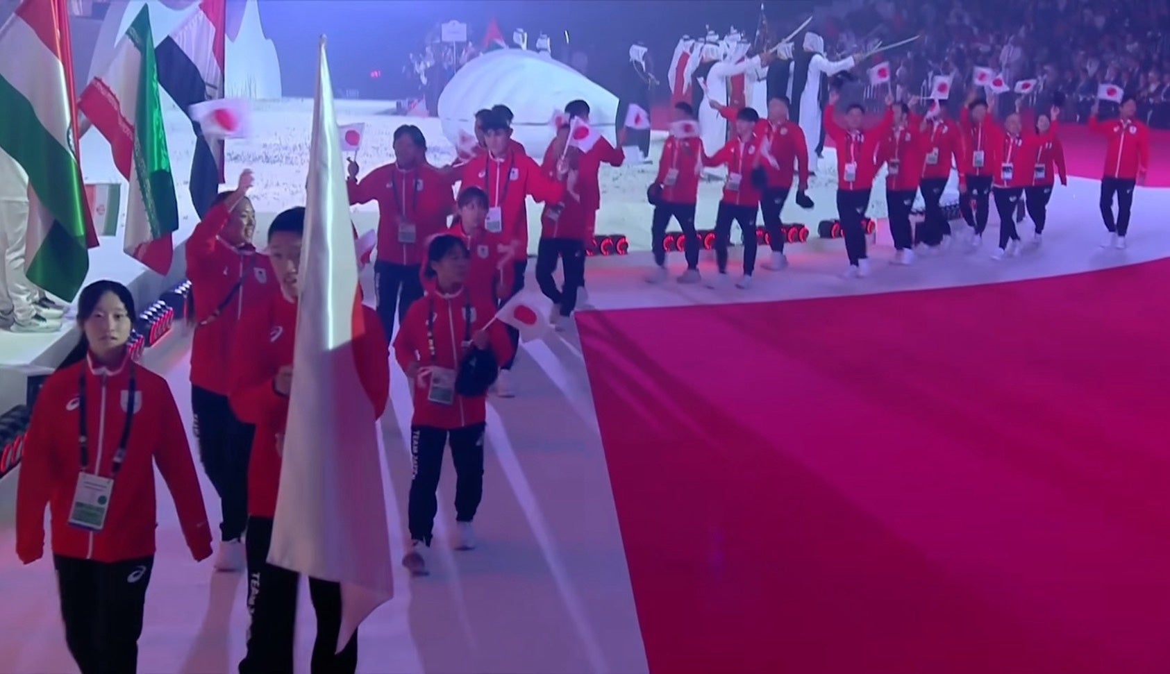 大会はオリンピックさながらの盛大な開会式で幕を開け、日本代表団も堂々と行進を行いました。