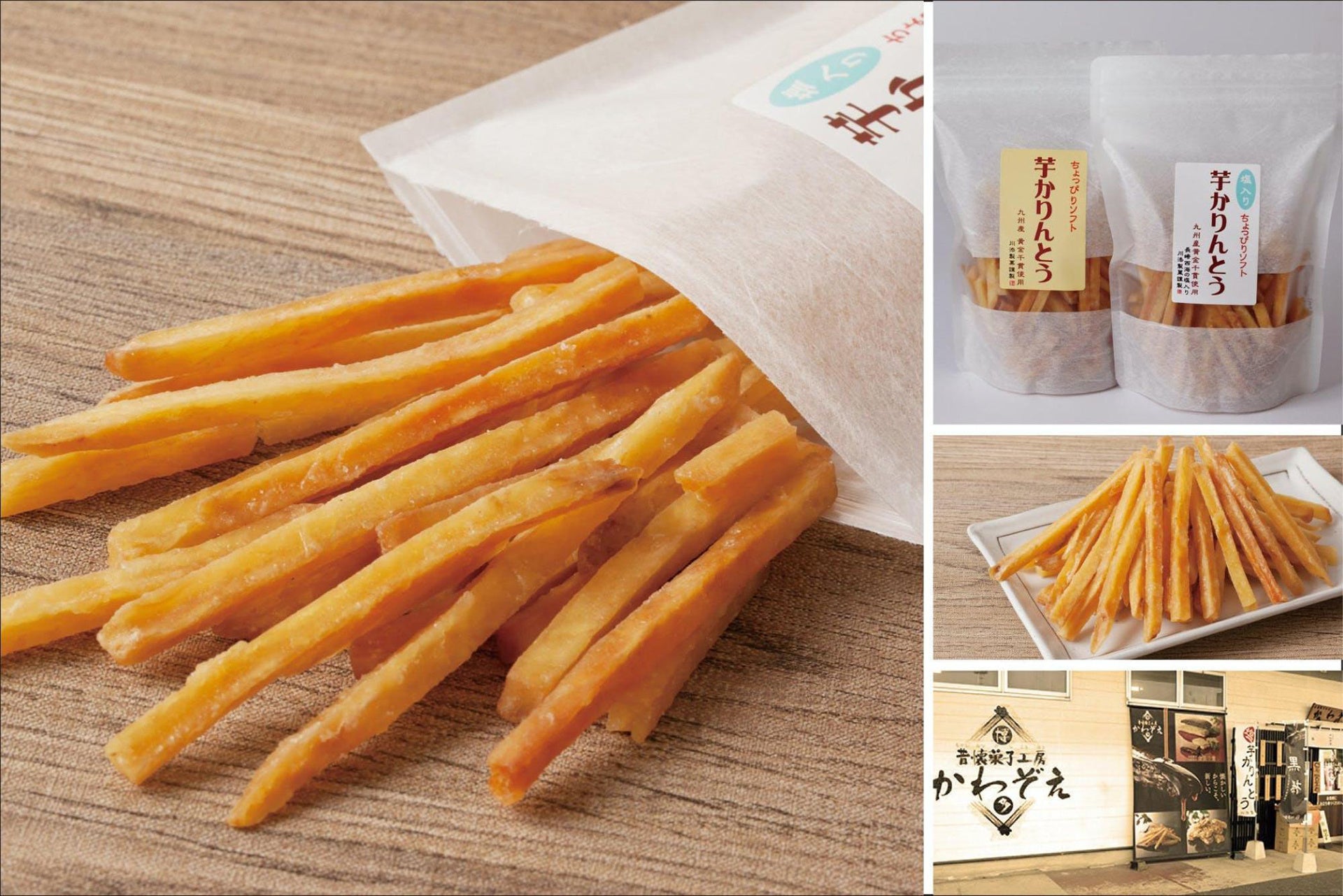 福岡市南区野多目にある、博多の菓子処「川添製菓」の大人気商品「芋かりんとう」と大人向け「塩入芋かりんとう」。南国宮崎で育てられ、ホクホクとした食感と本来の甘みを持つ美味しいさつま芋「黄金千貫」を使用したかりんとう。福岡の地で60年以上、昔ながらの製造方法を守り続ける老舗店の味をぜひ。
