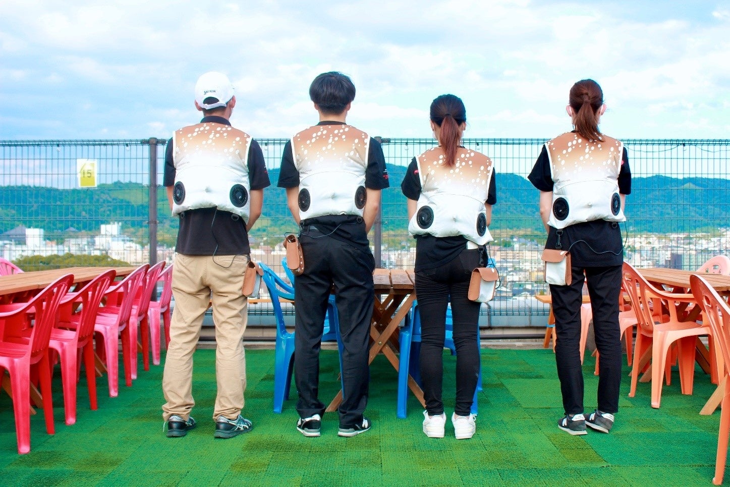 今回のオリジナルデザイン電動ファン付きウェアは、屋上ビアガーデンが開催されている6月3日から9月18日までの期間着用を予定しています。