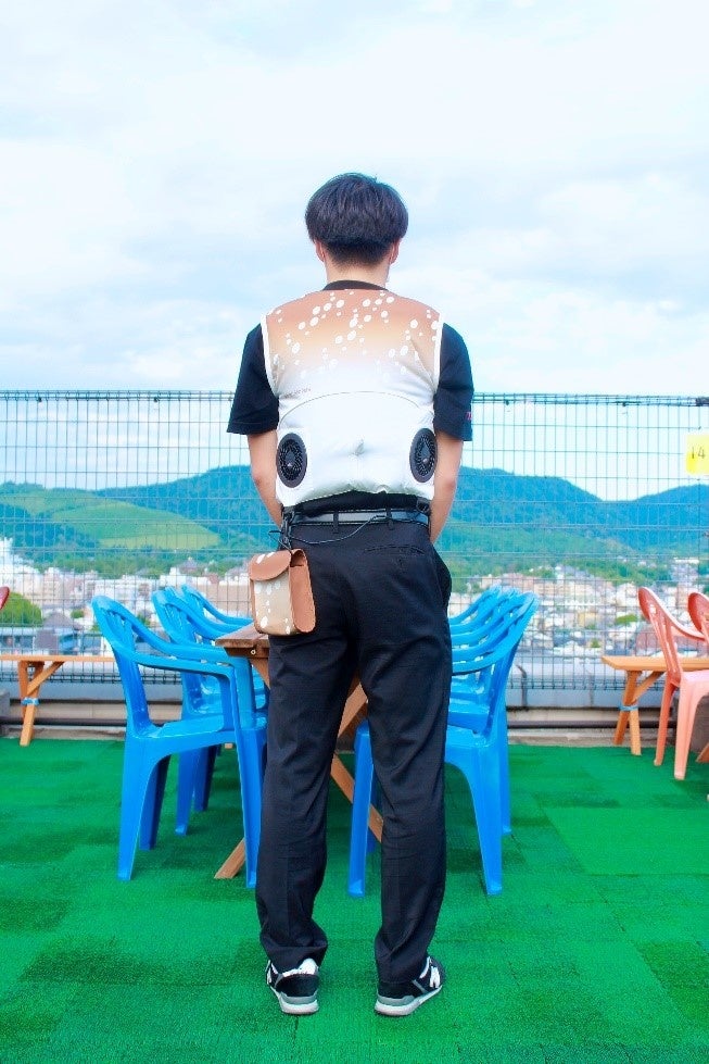 株式会社チクマ(本社:大阪市中央区、代表取締役社長:堀松 渉、以下 チクマ)は、ホテル日航奈良(奈良県奈良市三条本町)の屋上ビアガーデンスタッフの猛暑対策アイテムとして、鹿柄のオリジナルデザイン電動ファン付きウェア(EFウェア)を製作しました。
