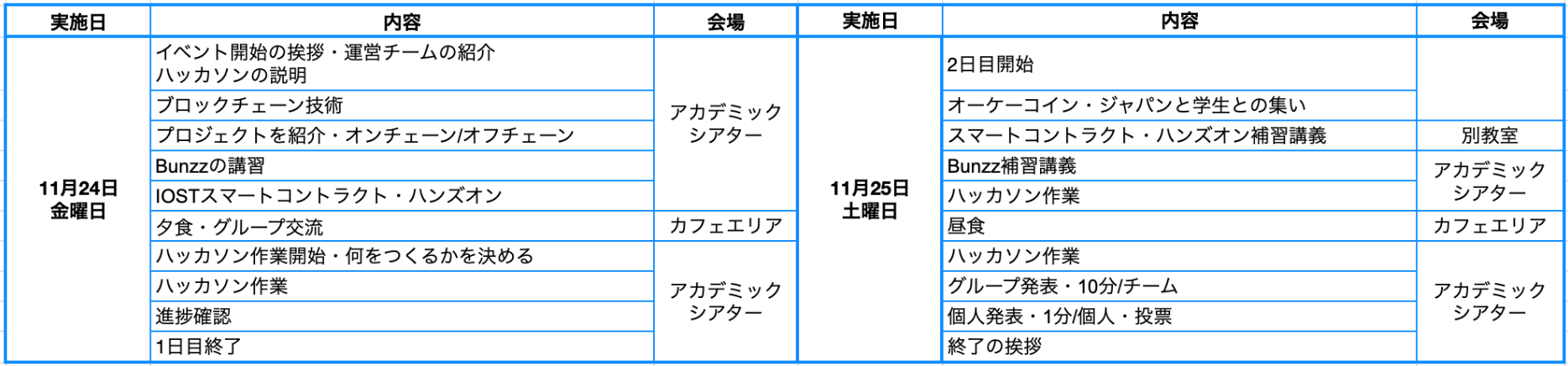 Web3産学教育ハッカソンのタイムテーブル