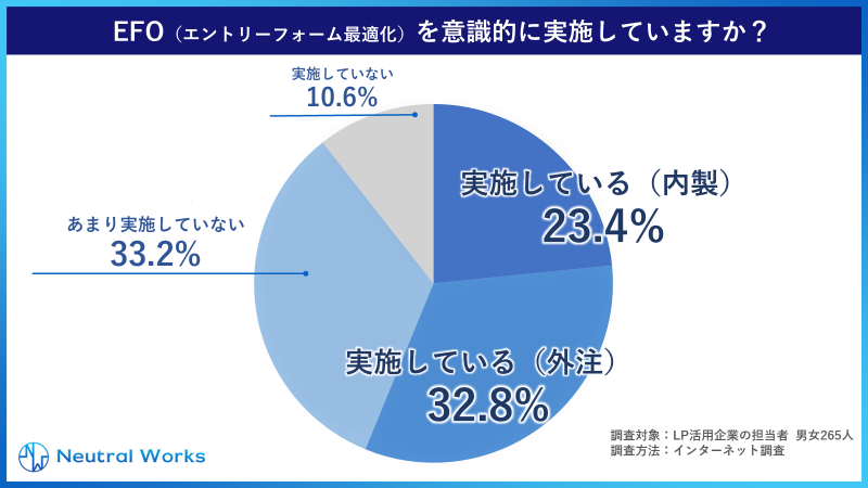 デジタルマーケティング支援をしている株式会社ニュートラルワークス(神奈川県茅ヶ崎市 代表取締役:三木五月、以下「ニュートラルワークス」)は、自社でランディングページを活用している企業の担当者男女265名を対象に、ランディングページに関する実態調査を行いました。