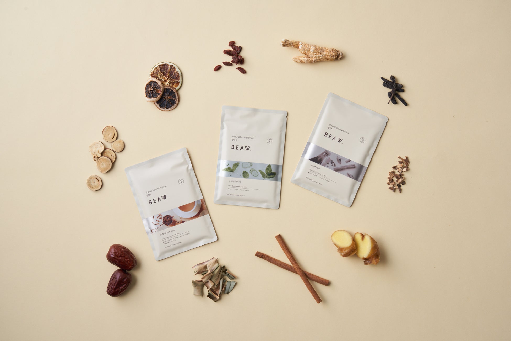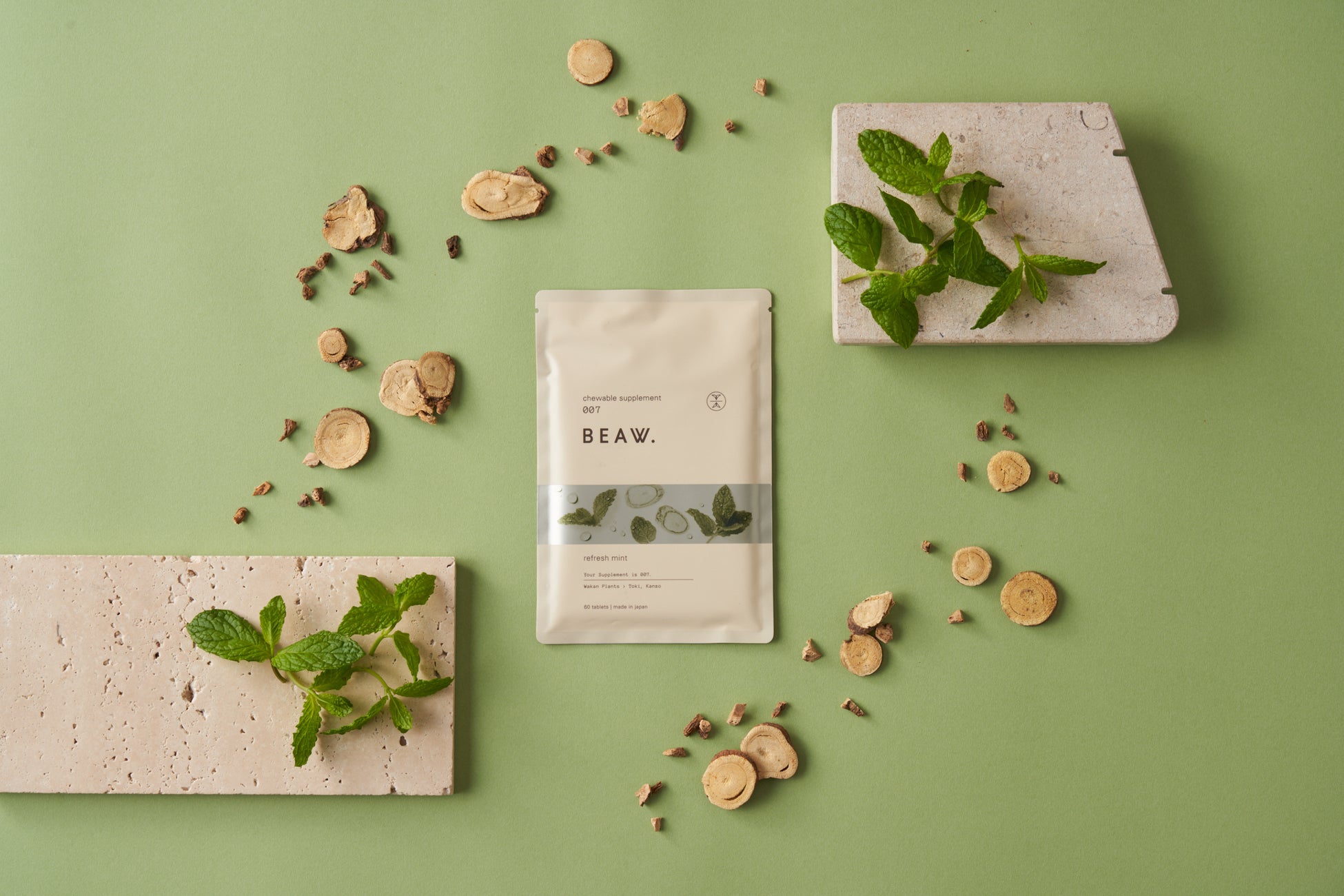 和漢素材由来のデュアルスキンケア「BEAW.(ビュウ)」、2024年8月30日(金)より、香り豊かなフレーバー付きの和漢サプリ『BEAW. chewable supplement〈3種類〉』を販売開始