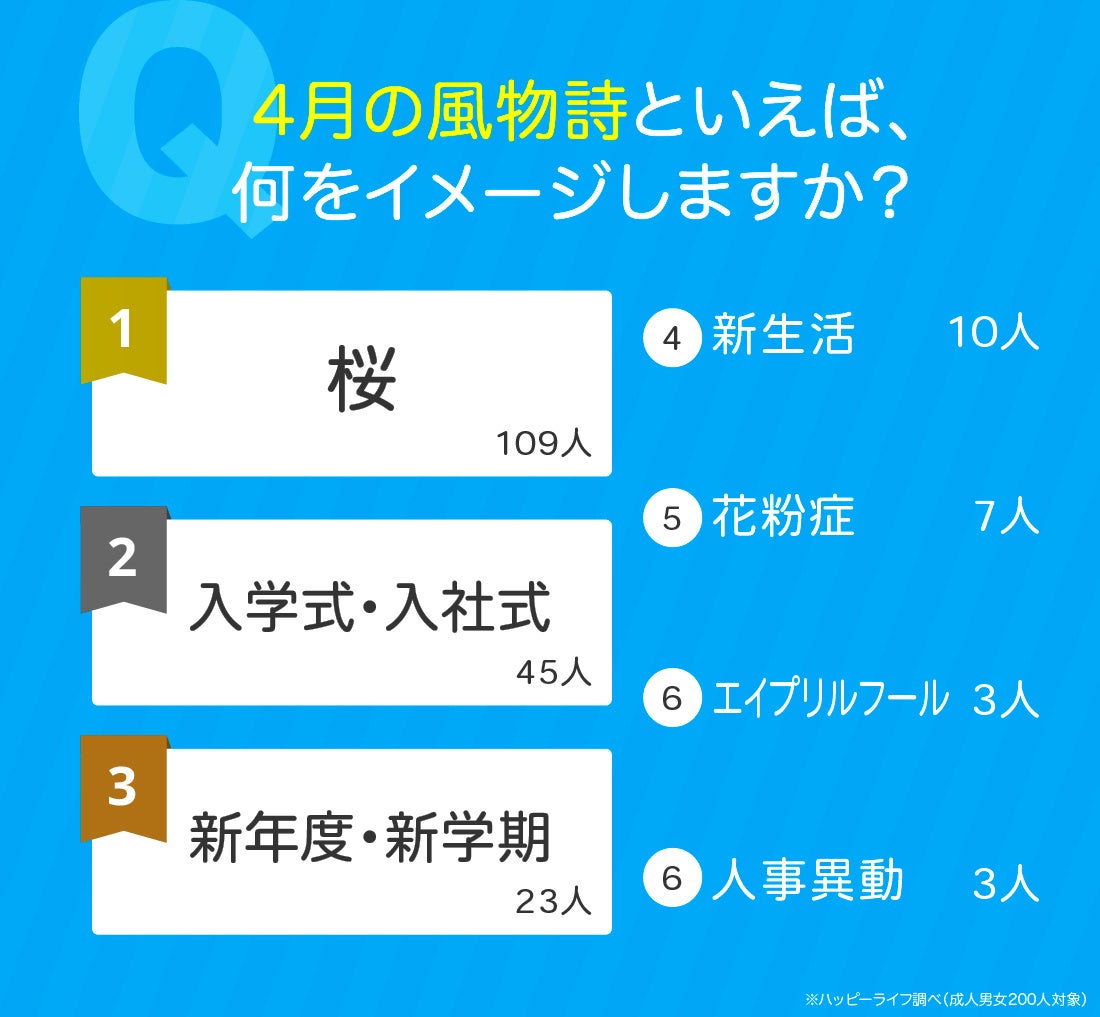 4月といえば何をイメージするか聞いたところ、1位は「桜」でした。