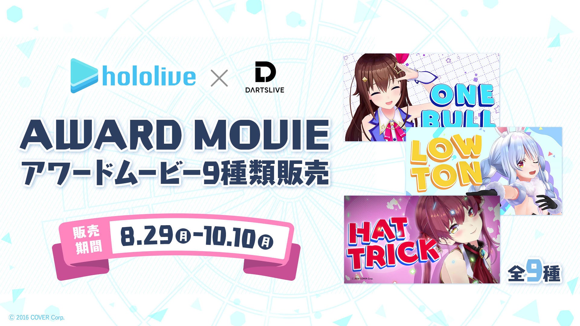 コラボキャンペーンに先駆けて8月29日(月)より、ときのそら・兎田ぺこら・宝鐘マリンの3人がダーツのプレイを華やかに演出するショートムービー「アワードムービー」を販売。ぜひお気に入りのムービーを手に入れて『ホロライブCOUNT-UP』をお楽しみください。