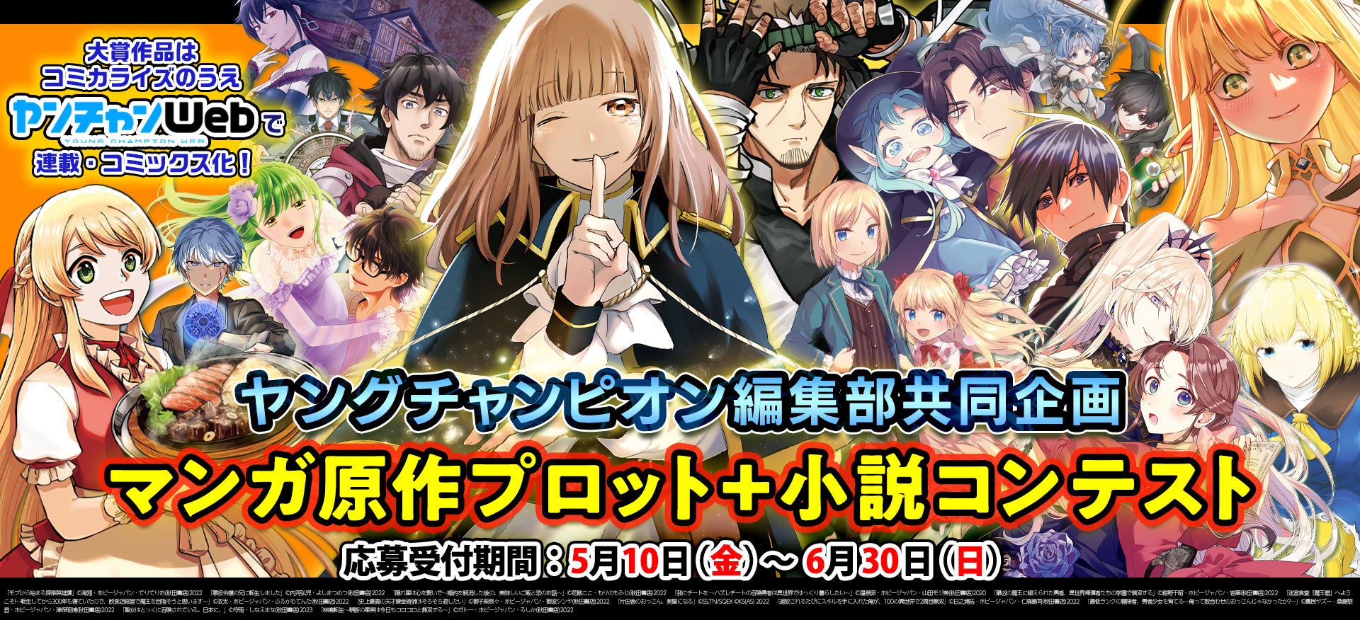 『ヤングチャンピオン』『別冊ヤングチャンピオン』『ヤングチャンピオン烈』という人気青年漫画誌シリーズに加え、2023年からはコミックサイト「ヤンチャンWeb」まで手掛ける秋田書店・ヤングチャンピオン編集部とノベルアップ+による共同企画が実現!