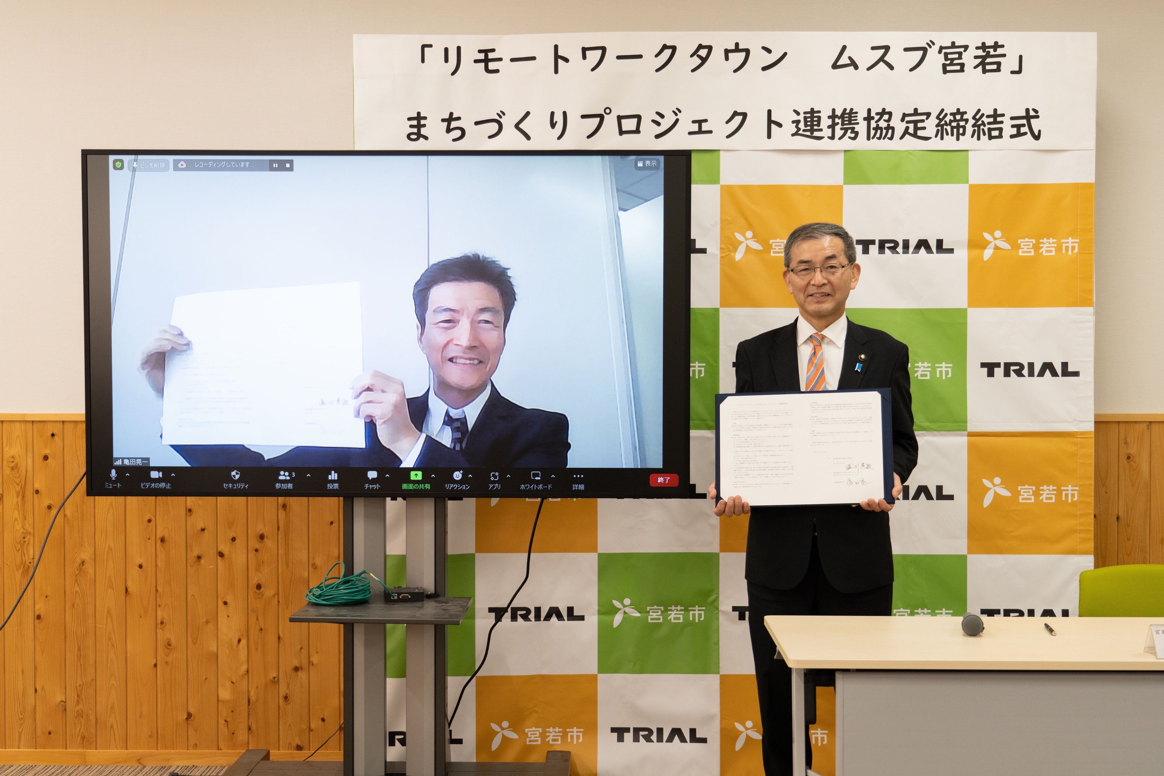 株式会社トライアルホールディングス(本社:福岡県福岡市、代表取締役社長:亀田 晃一、以下トライアル)は、2020年9月に締結した産官連携のまちづくりプロジェクト「リモートワークタウン ムスブ宮若」連携協定を継承・発展する形で、2月28日(火)に宮若市と新たな連携協定を締結したことをお知らせします。