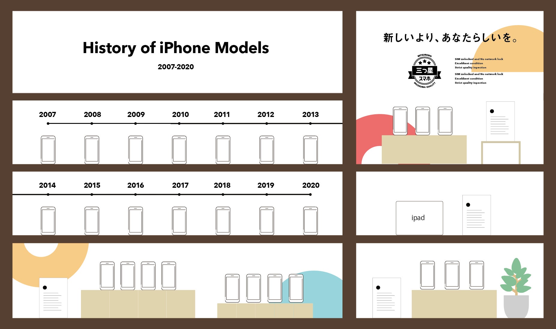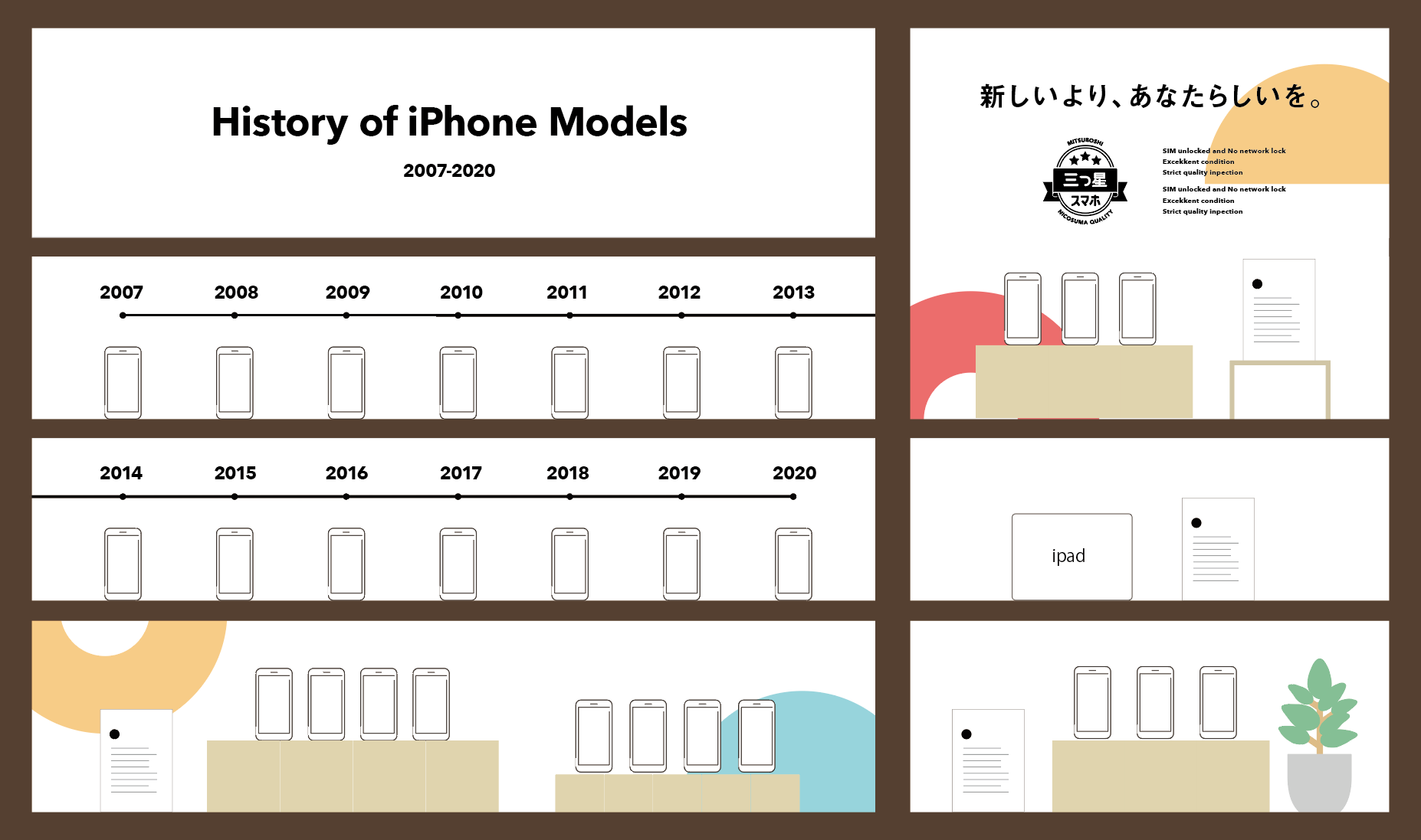 また中古スマートフォンならではの魅力を伝えるべく、iPhone 2G(初代)〜iPhone 12Proの歴代iPhoneの展示エリアを設置しております。iPhoneの進化の過程を見ていただきながらスマホ選びの参考に、また昔買った時の思い出を回想いただける空間に出来ればと考えており、皆様にとって気軽に中古スマートフォンに知っていただけるような店舗となっております。