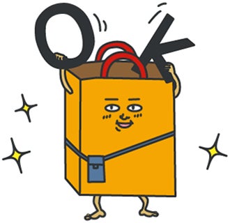 オリジナルバッグのキャラクターがかわいい、「OK」や「おつかれさま」など