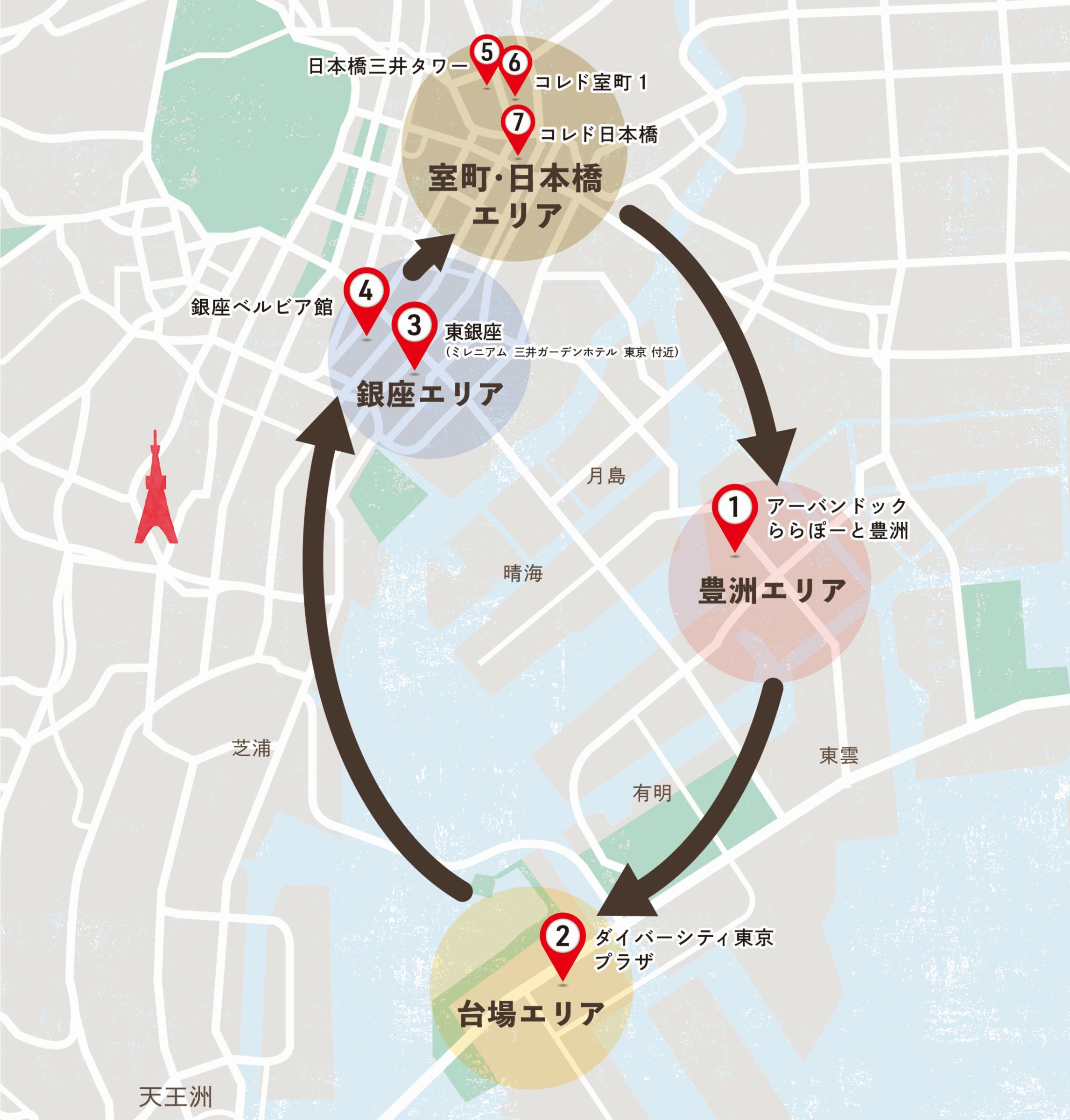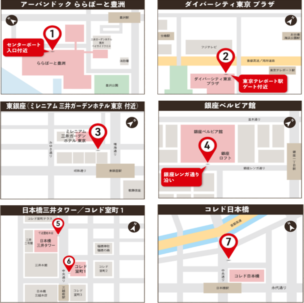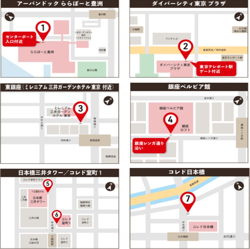 ベイエリア(豊洲・台場)と都心(銀座・室町・日本橋)エリアの、三井不動産商業マネジメントが運営する商業施設利用者向けに、乗り換えなしの周遊ルートを提供します。